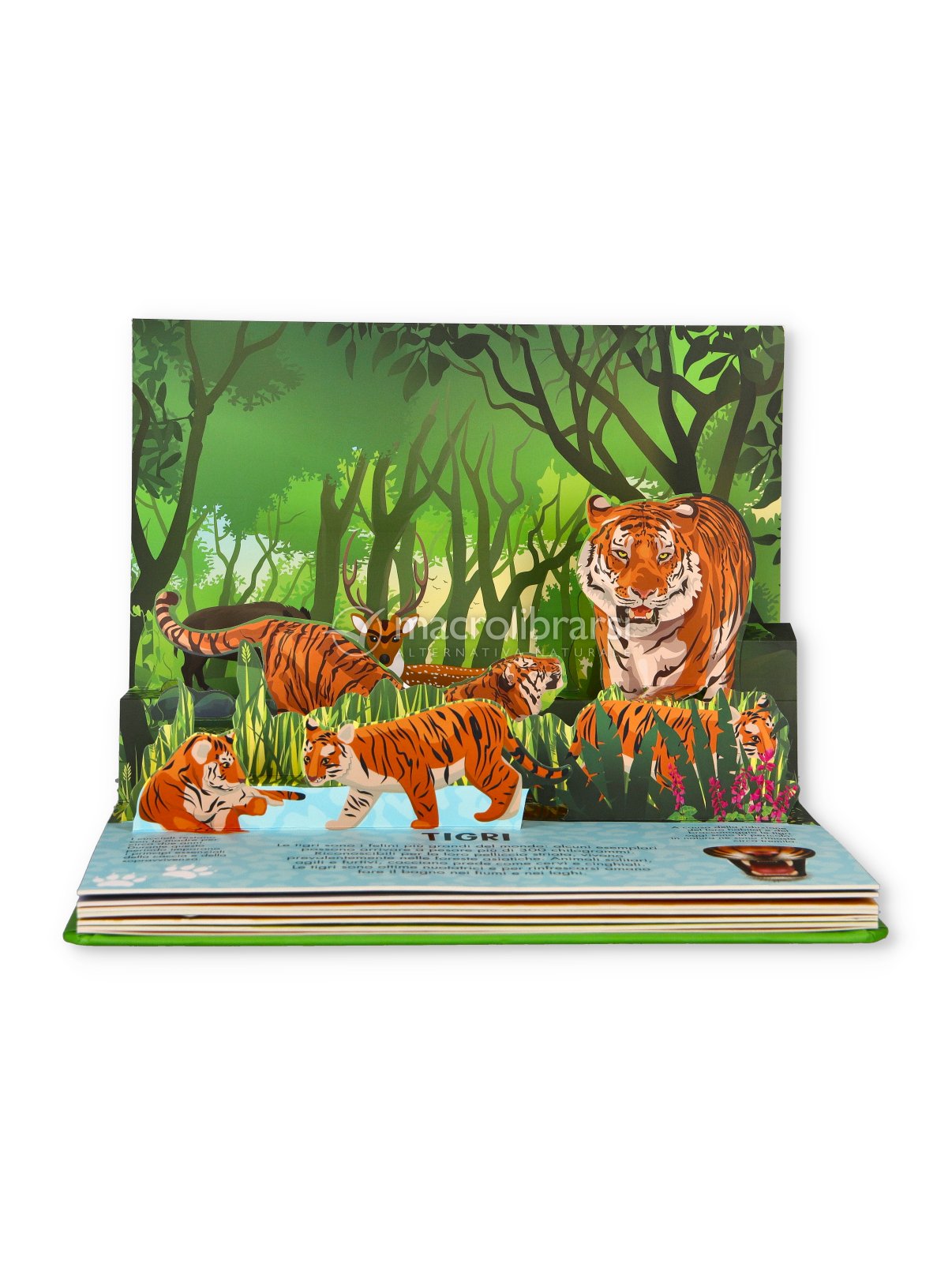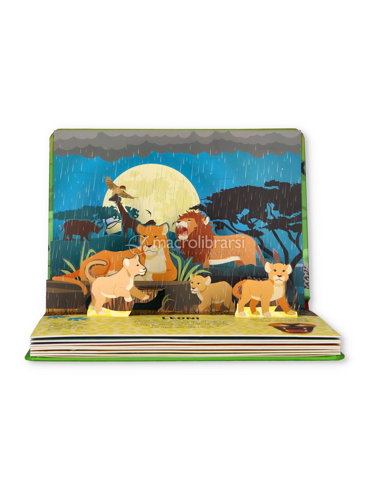I grandi felini del mondo sono presentati in 8 diversi scenari pop up, realizzati su vari livelli per dare il senso della prospettiva, con un sorprendente effetto tridimensionale.