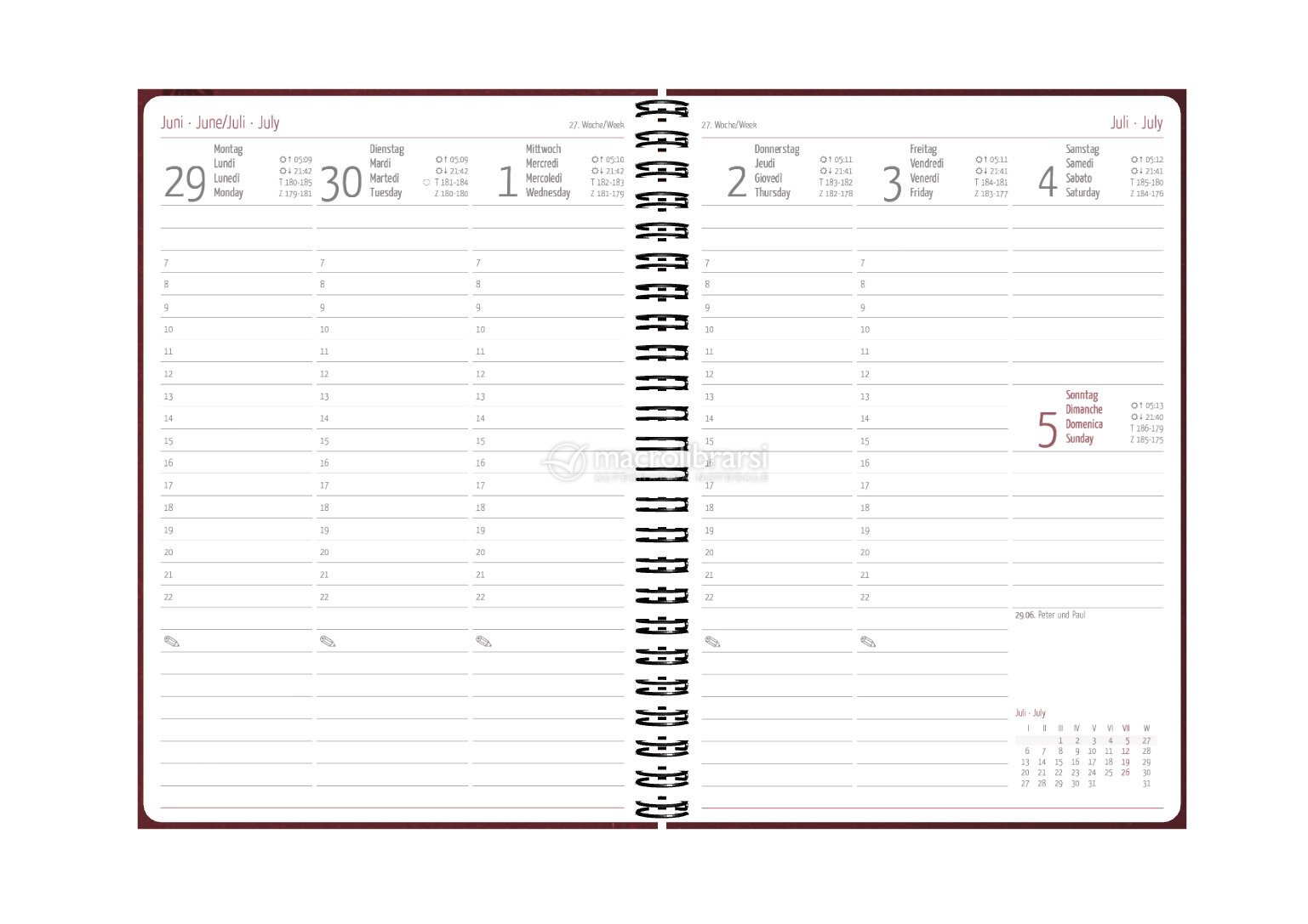 Multilingue (DE/FR/IT/GB) e ricca di informazioni utili come festività internazionali, prefissi telefonici, date delle vacanze e pagine per indirizzi e appunti, è un compagno ideale per chi desidera uno strumento completo e sostenibile.