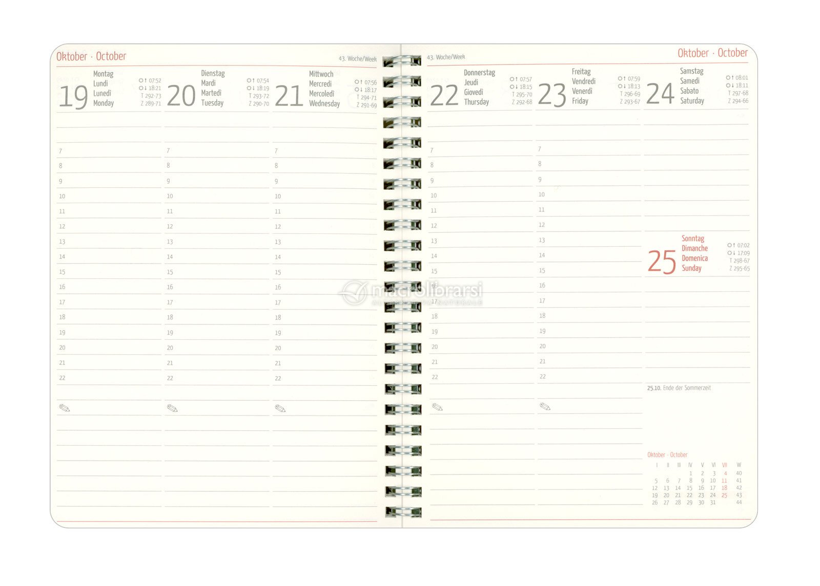- un’agenda quadrilingue (DE/FR/IT/GB) con festività internazionali.