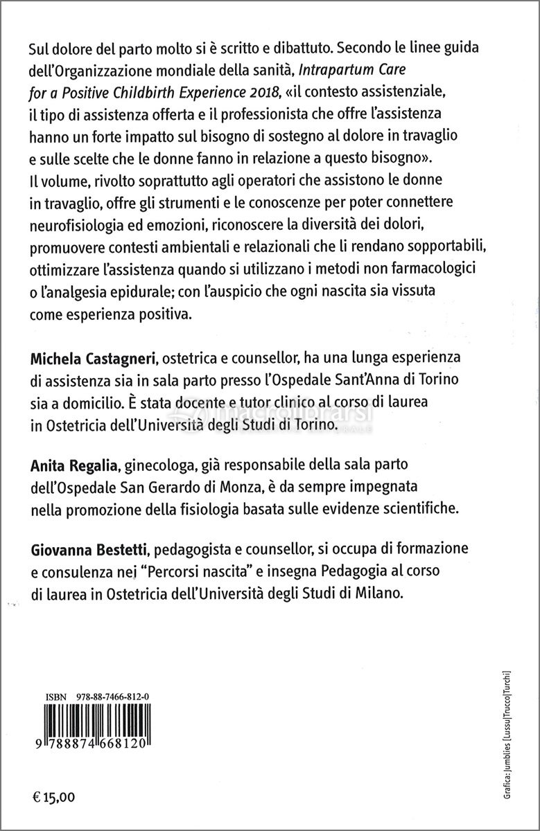 Il volume, rivolto soprattutto agli operatori che assistono le donne in travaglio, offre gli strumenti e le conoscenze per poter connettere neurofisiologia ed emozioni, riconoscere la diversità dei dolori, promuovere contesti ambientali e relazionali che li rendano sopportabili, ottimizzare l'assistenza quando si utilizzano i metodi non farmacologici o l'analgesia epidurale; con l'auspicio che ogni nascita sia vissuta come esperienza positiva.