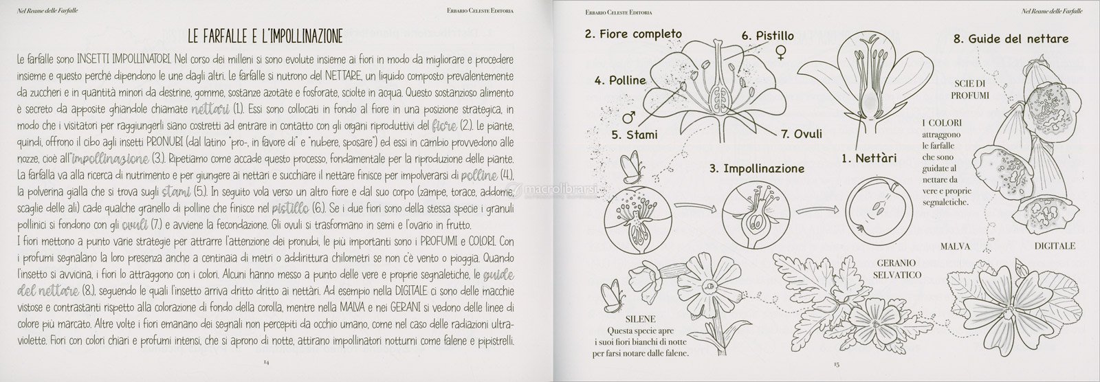 Il libro unisce spiegazioni chiare e immagini dettagliate, aiutando a comprendere come avviene la metamorfosi, in che modo funziona l’impollinazione e perché colori e profumi sono così importanti nel mondo vegetale.