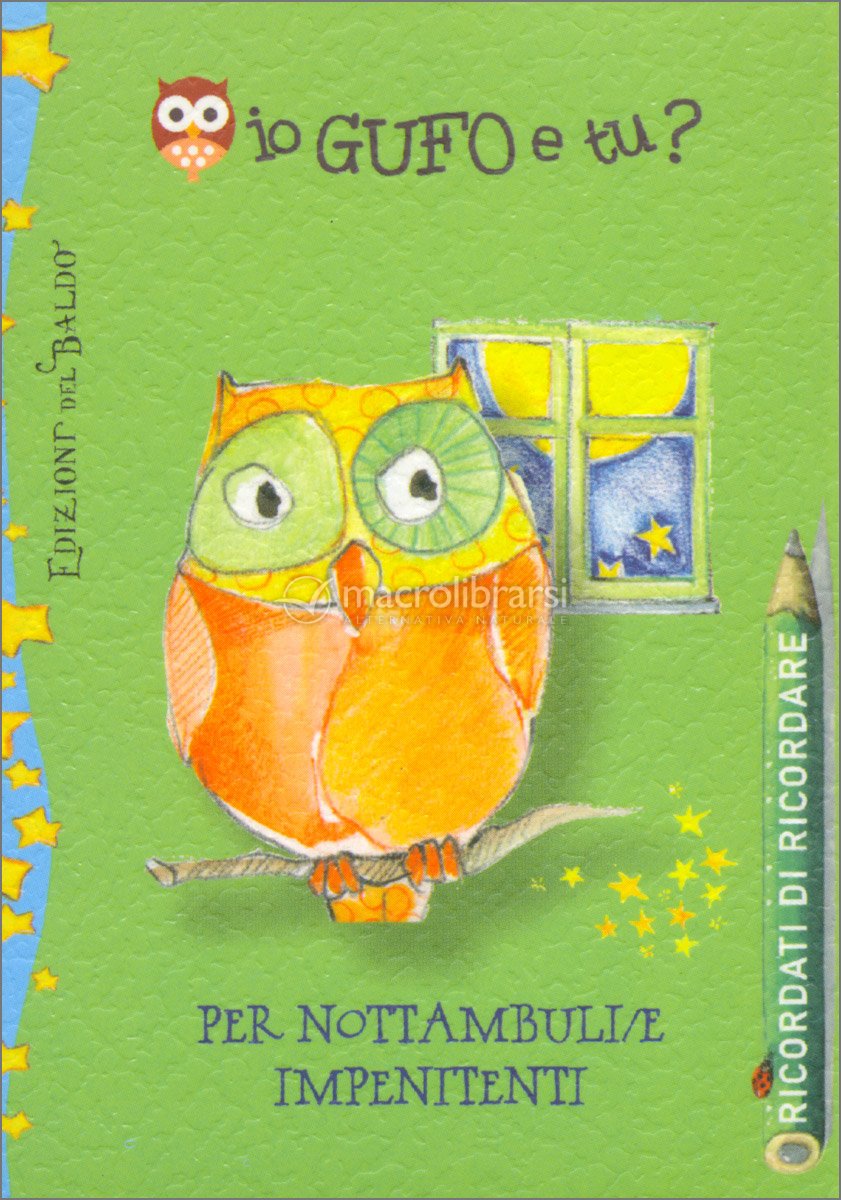 In copertina abbiamo un simpatico gufo dai colori vivaci accanto a una finestra.