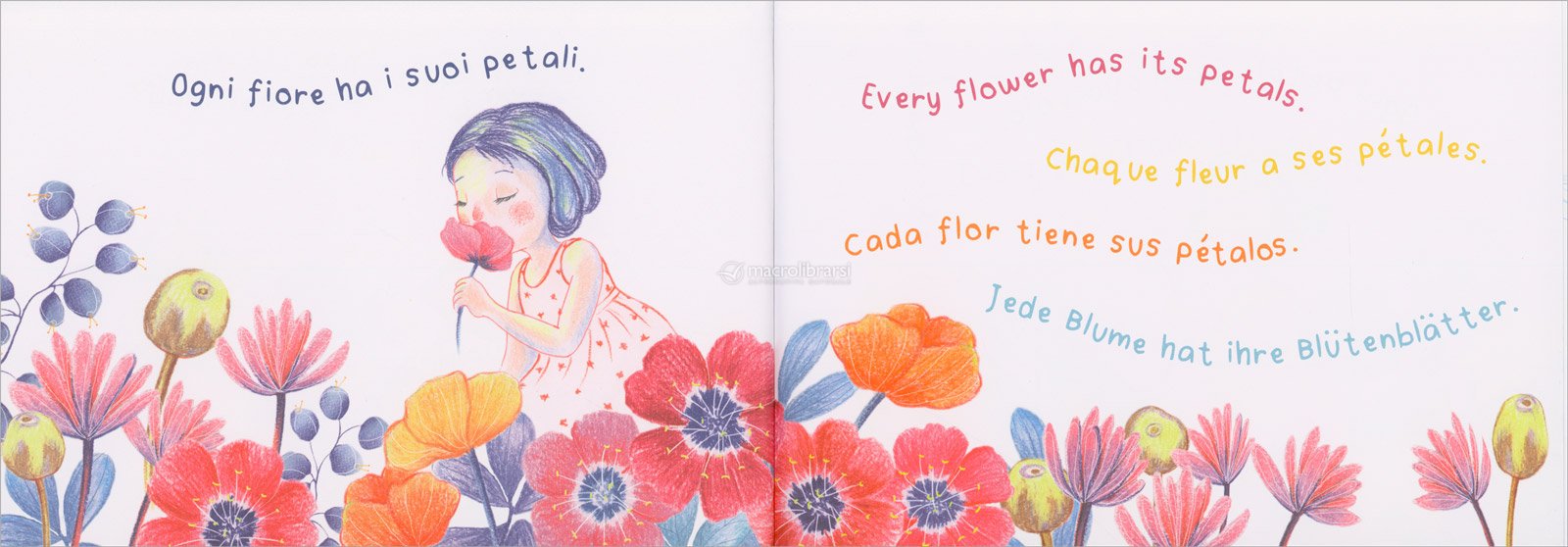 Le illustrazioni delicate accompagnano un testo semplice e musicale, che invita a giocare con le parole, a ricominciare ogni volta da capo e a scoprire la bellezza dei suoni che cambiano da una lingua all’altra.