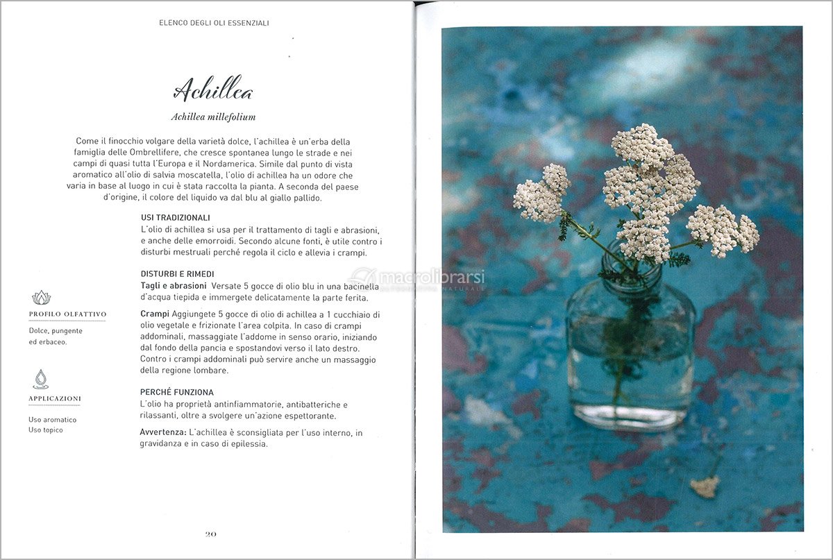 I benefici per la salute di ogni olio essenziale sono accompagnati da consigli di esperti di terapie di bellezza, aromaterapia e del trattamento di problemi comuni come mal di testa, stress, raffreddori, dolori muscolari, e altro ancora.