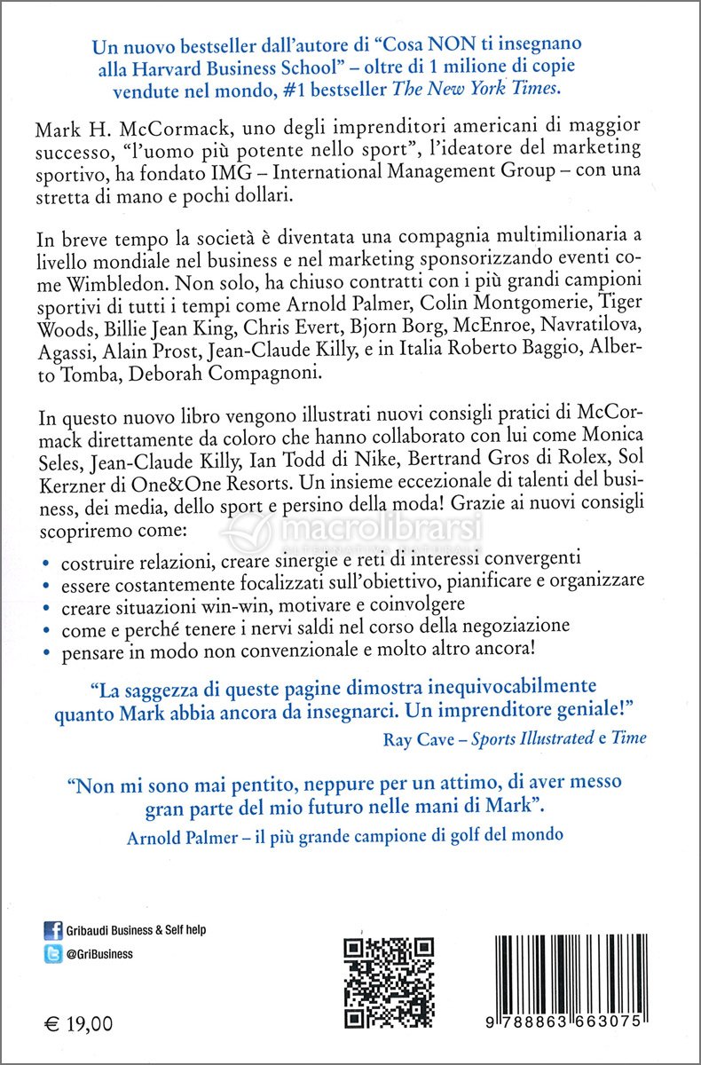 In questo nuovo libro vengono illustrati nuovi consigli pratici di McCormack direttamente da coloro che hanno collaborato con lui come Monica Scles, Jean-Claude Killy, Ian Todd di Nike, Bertrand Gros di Rolex, Sol Kerzner di One&One Resorts. Un insieme eccezionale di talenti del business, dei media, dello sport e persino della moda!
