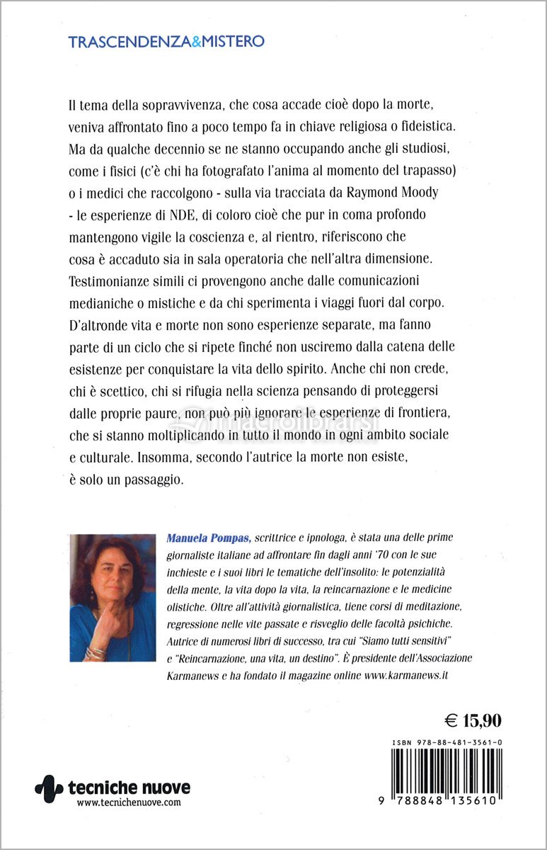 Il tema della sopravvivenza, che cosa accade cioè dopo la morte, veniva affrontato lino a poco tempo fa in chiave religiosa o fideistica. Ma da qualche decennio se ne stanno occupando anche gli studiosi, come i fisici (c'è chi ha fotografato l'anima al momento del trapasso) o i medici che raccolgono - sulla via tracciata da Raymond Moody - le esperienze di NDE, di coloro cioè che pur in coma profondo mantengono vigile la coscienza e, al rientro, riferiscono che cosa è accaduto sia in sala operatoria che nell'altra dimensione.