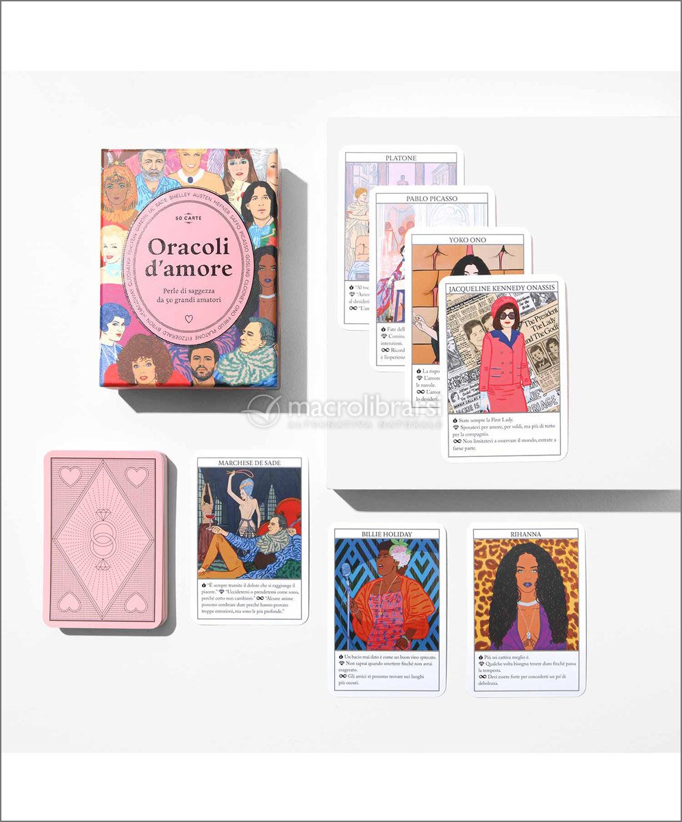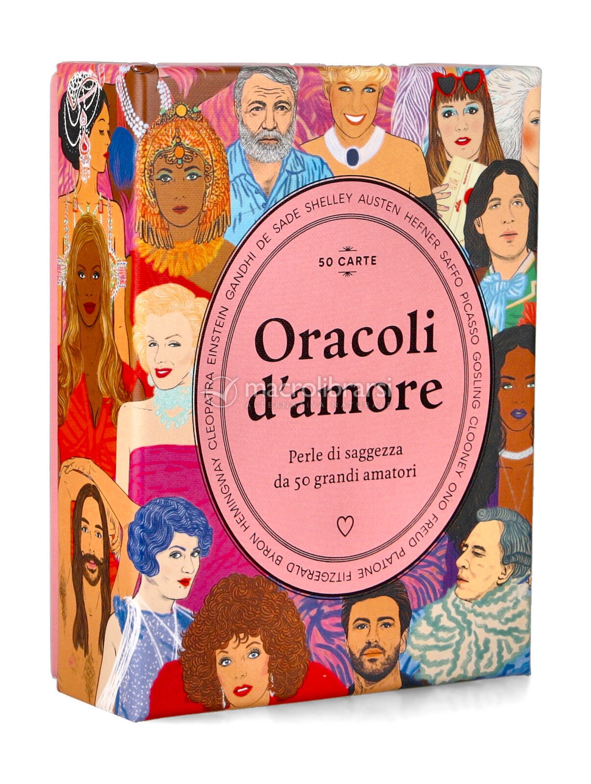 Un oracolo "Pink", per chi vuole indagare con leggerezza su questioni sentimentali. Le carte possono essere lette su tre livelli differenti, in base a domande su rapporti fugaci, di amicizia o più stabili. Carina l'associazione con i personaggi famosi di diverse epoche e la grafica risulta accattivante e vivace. Ottima la qualità delle carte (opache), con libretto in italiano che spiega in breve la biografia dei 50 soggetti illustrati.