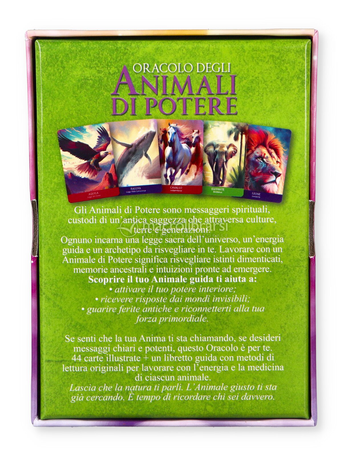 Le 44 carte rappresentano animali archetipici che incarnano qualità, energie e insegnamenti universali. Ogni carta non si limita a offrire un messaggio, ma diventa un vero e proprio punto di connessione tra il tuo mondo interiore e le forze della natura, aiutandoti a leggere ciò che stai vivendo con maggiore chiarezza.