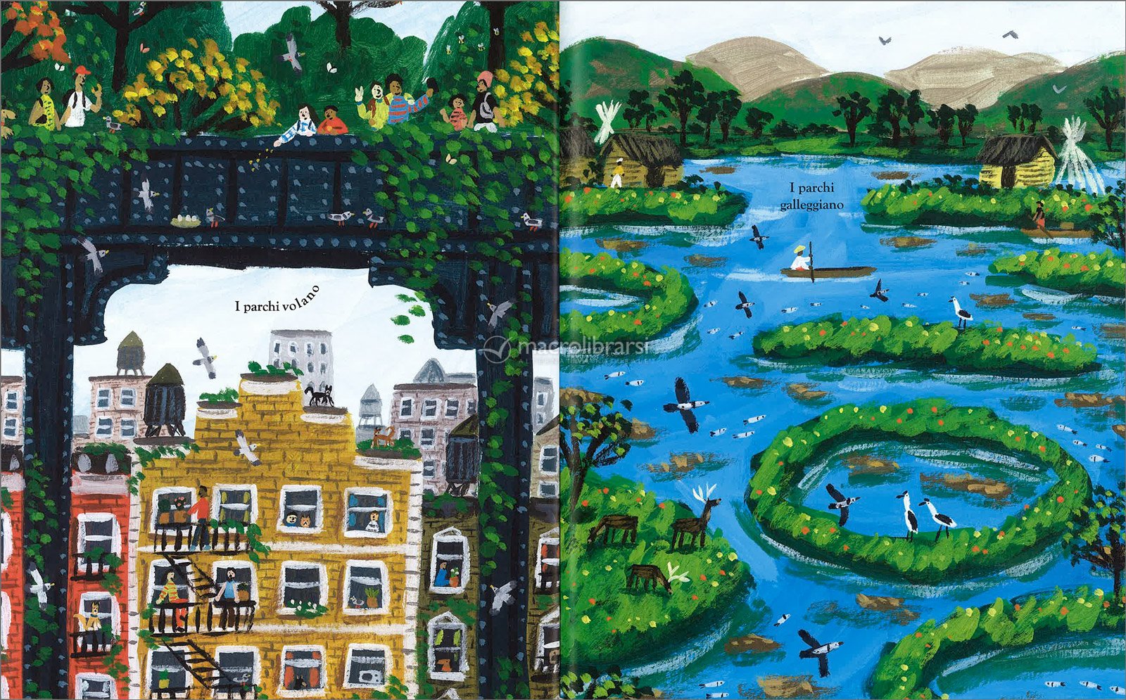 Un albo illustrato che invita a esplorare i parchi più sorprendenti del mondo, tra città, natura e immaginazione.