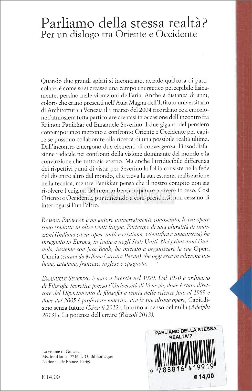 Parliamo della stessa realtà? è un dialogo intenso e rigoroso tra due grandi pensatori del Novecento, Raimon Panikkar ed Emanuele Severino, che si confrontano su una delle domande più profonde e decisive: che cos’è la realtà e come possiamo conoscerla.