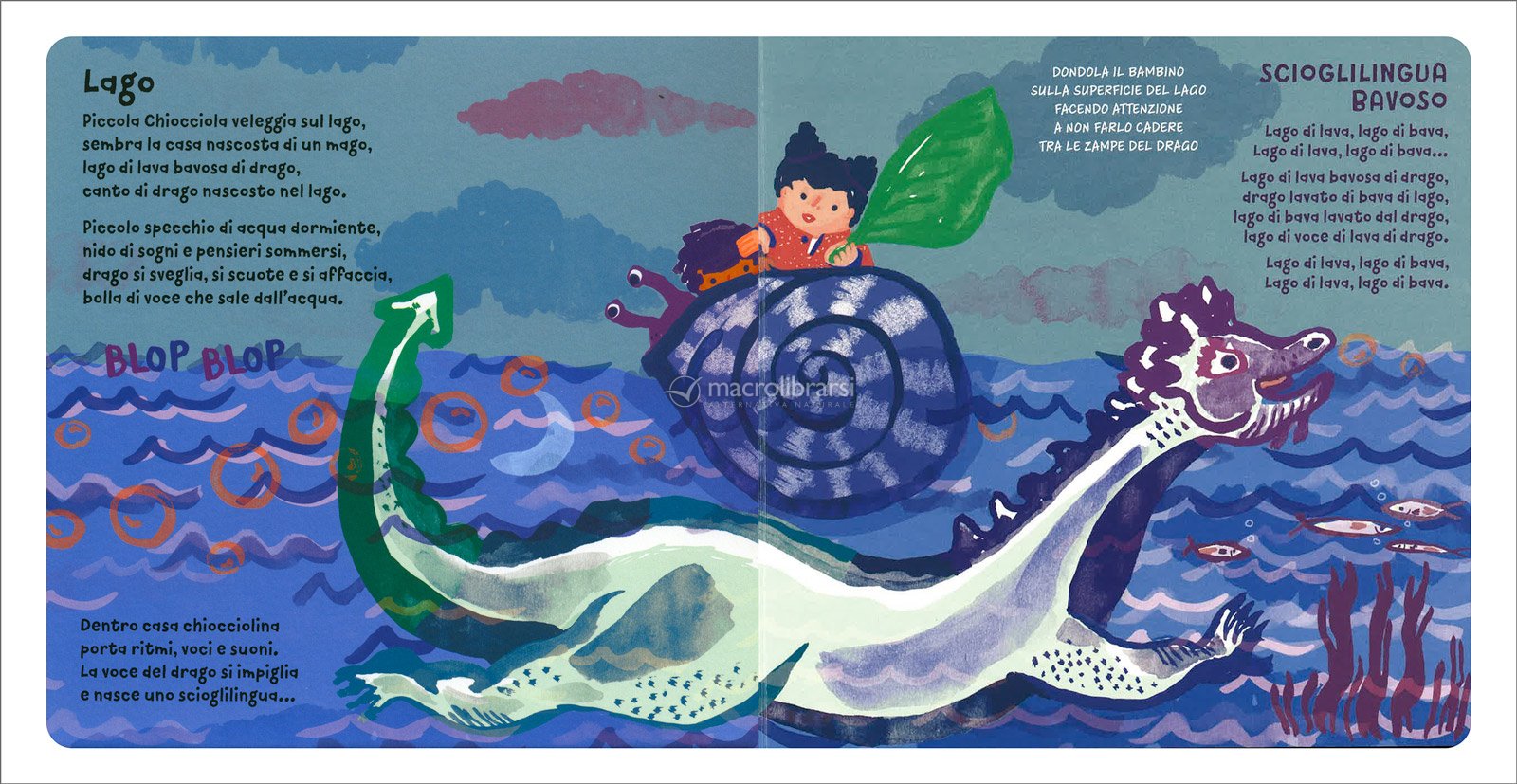 Testi semplici e poetici invitano i lettori a seguire la creatività di Piccola Chiocciola.
