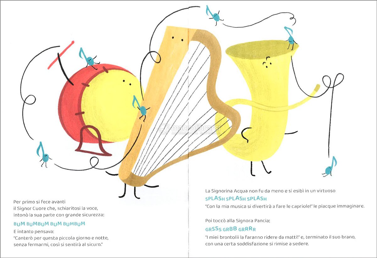Una storia delicata che racconta il mondo sonoro del neonato: ciò che vive e sente nella pancia della mamma è un concerto di suoni rassicuranti che ritroverà ad accoglierlo dopo la nascita.