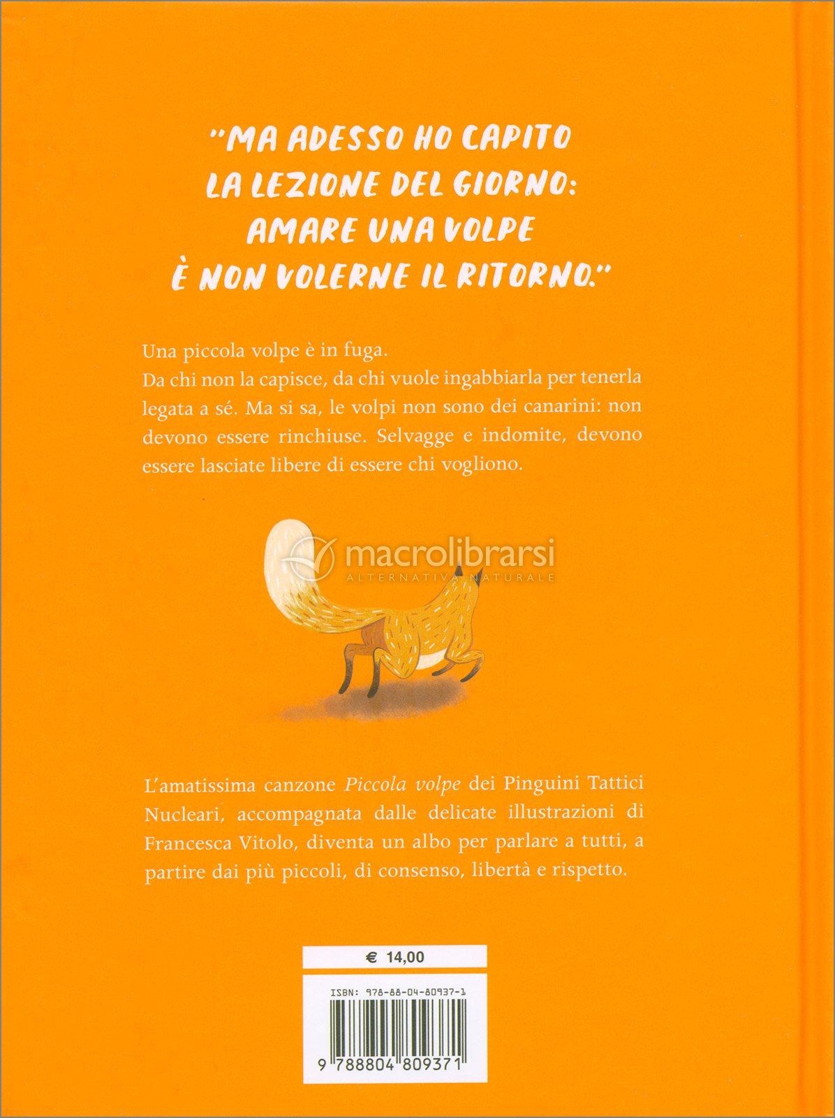 Una piccola volpe è in fuga. Da chi non la capisce, da chi vuole ingabbiarla per tenerla legata a sé. Ma si sa, le volpi non sono dei canarini: non devono essere rinchiuse. Selvagge e indomite, devono essere lasciate libere di essere chi vogliono.