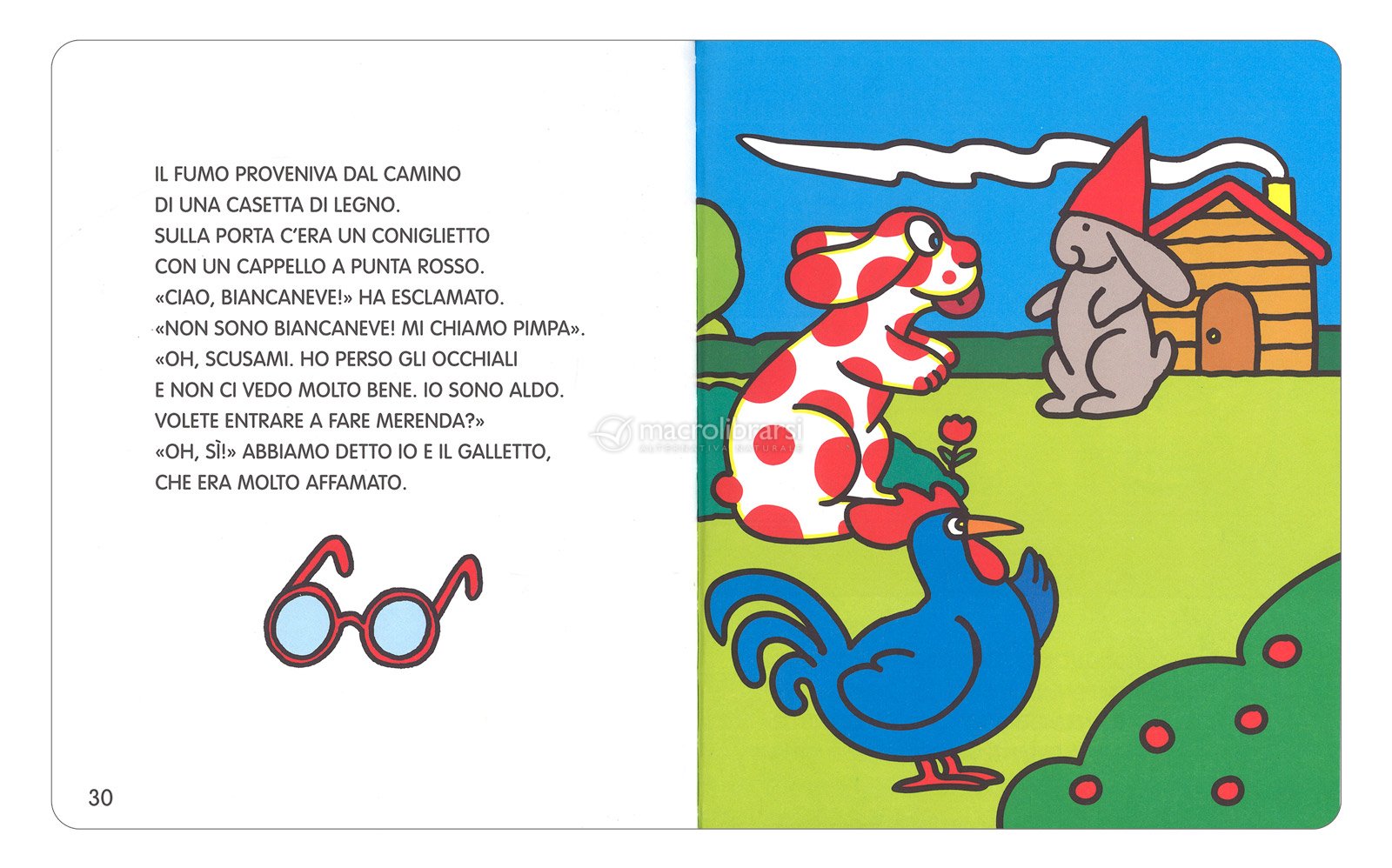 Mentre fuori infuria un temporale, Pimpa scopre un grande libro colorato e, spinta dalla sua curiosità, ci entra dentro con un salto.