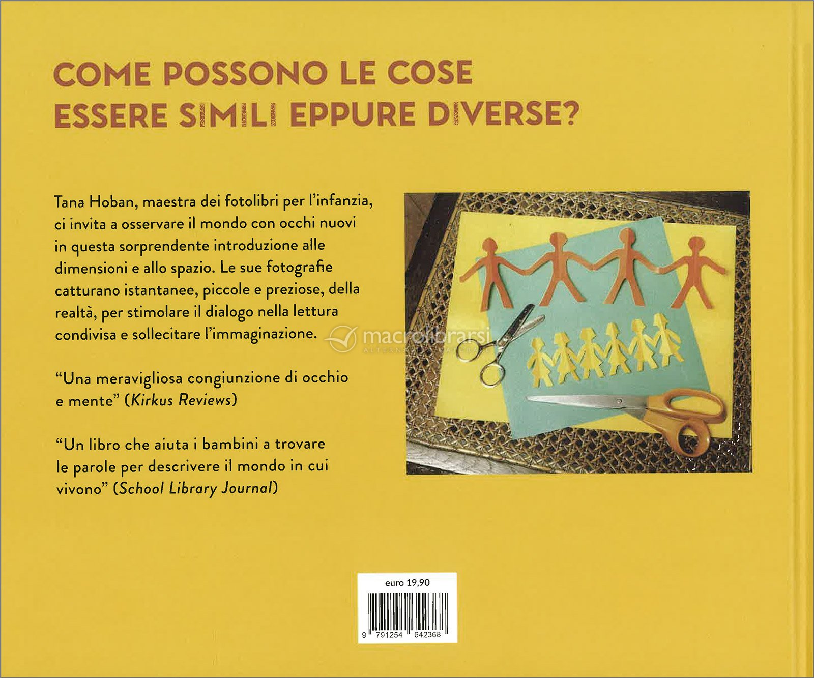 Attraverso fotografie delicate e reali, i piccoli lettori imparano a riconoscere le differenze di dimensione e a osservare gli oggetti del quotidiano in modo nuovo.