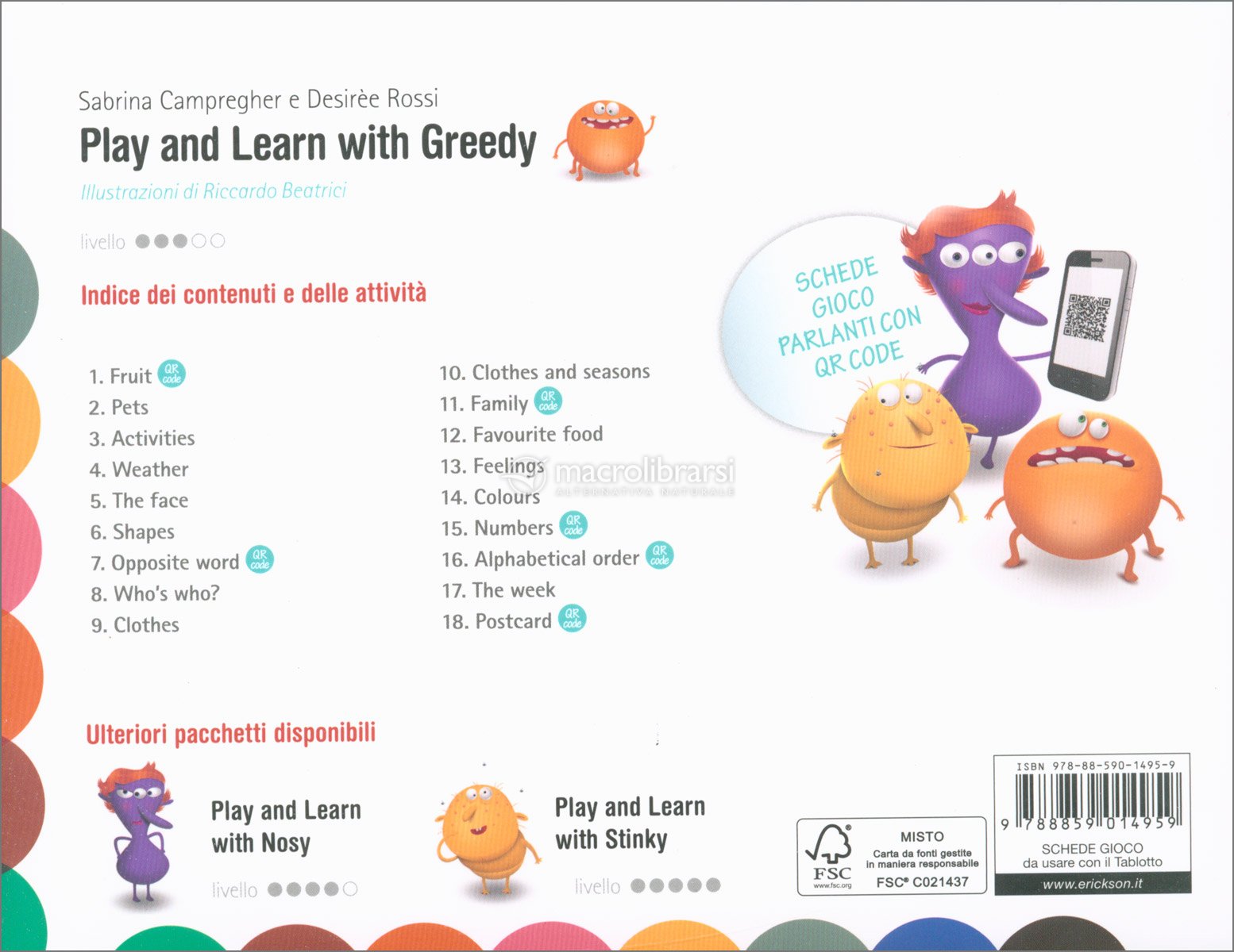 Play and Learn with Greedy raccoglie 18 schede gioco da utilizzare con Tablotto