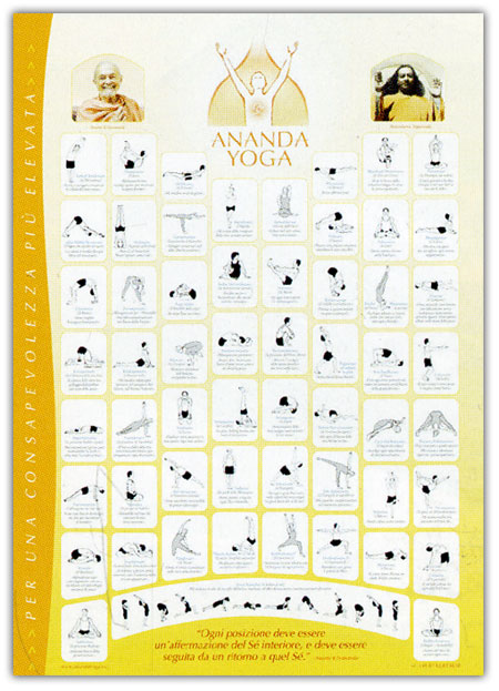 Tutte le posizioni dell'Ananda Yoga, sistema creato da Swami Kriyananda, che ha lo scopo di elevare la persona aumentandone la consapevolezza.