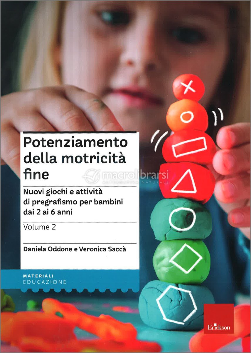 Potenziamento della motricità Fine – Volume 2 presenta attività che mirano a far acquisire e consolidare la motricità fine, regolazione del tono muscolare, prensione, coordinazione oculo-manuale, il controllo posturale, percezione dello schema corporeo, e la coordinazione dinamica dell’arto superiore.