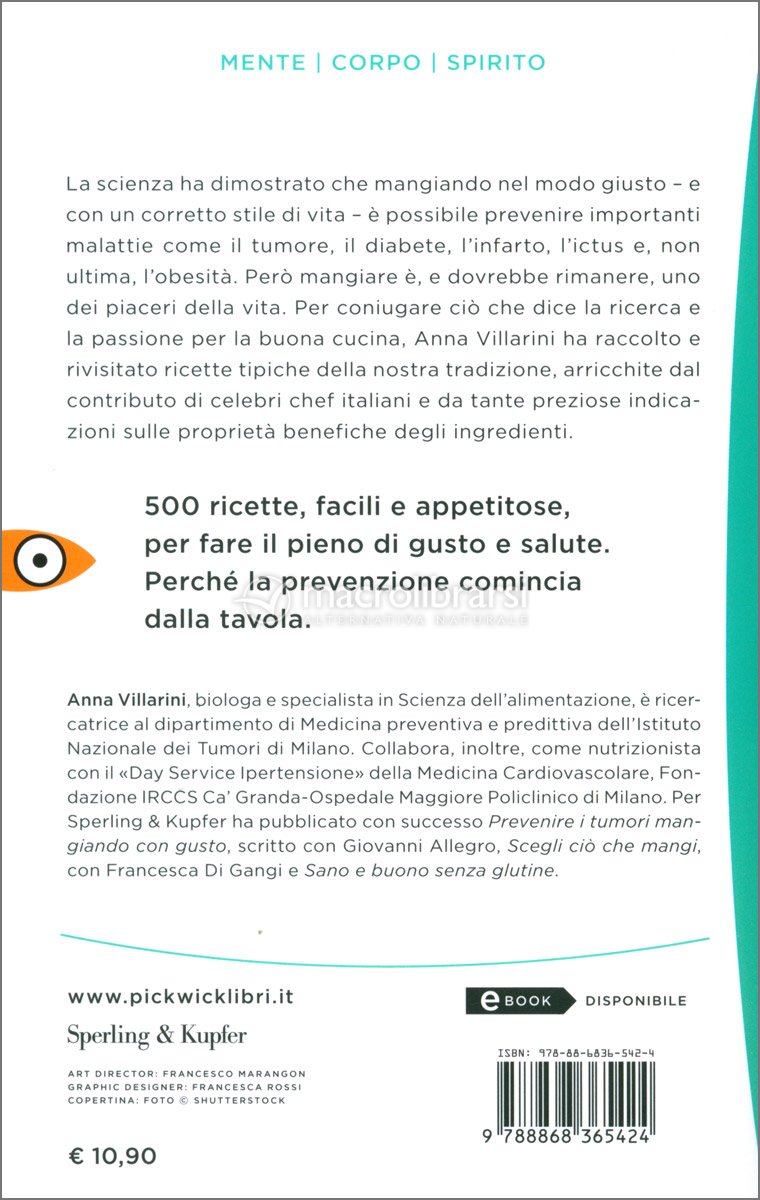 Prevenire i tumori mangiando con gusto è diventato il libro di riferimento su salute e alimentazione per decine di migliaia di medici e pazienti. In questo nuovo volume Anna Villarini si mette ai fornelli e propone oltre 500 ricette, facili e appetitose, dalle colazioni agli antipasti, dalle pizze alle torte rustiche, dai primi piatti ai dolci.