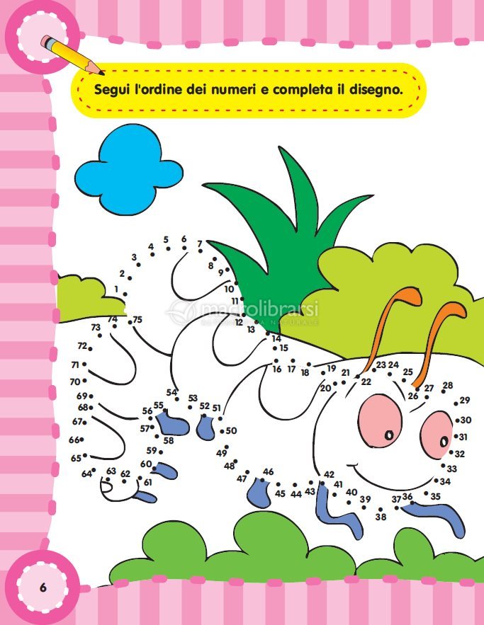 Questo libro contiene tanti giochi per bambini , da quello dei puntini da unire , a quello di colorare a piacere le figure che vengono fuori , tanti animali e altri soggetti da completare . Acquistato in offerta su macrolibrarsi , siamo molto contenti .