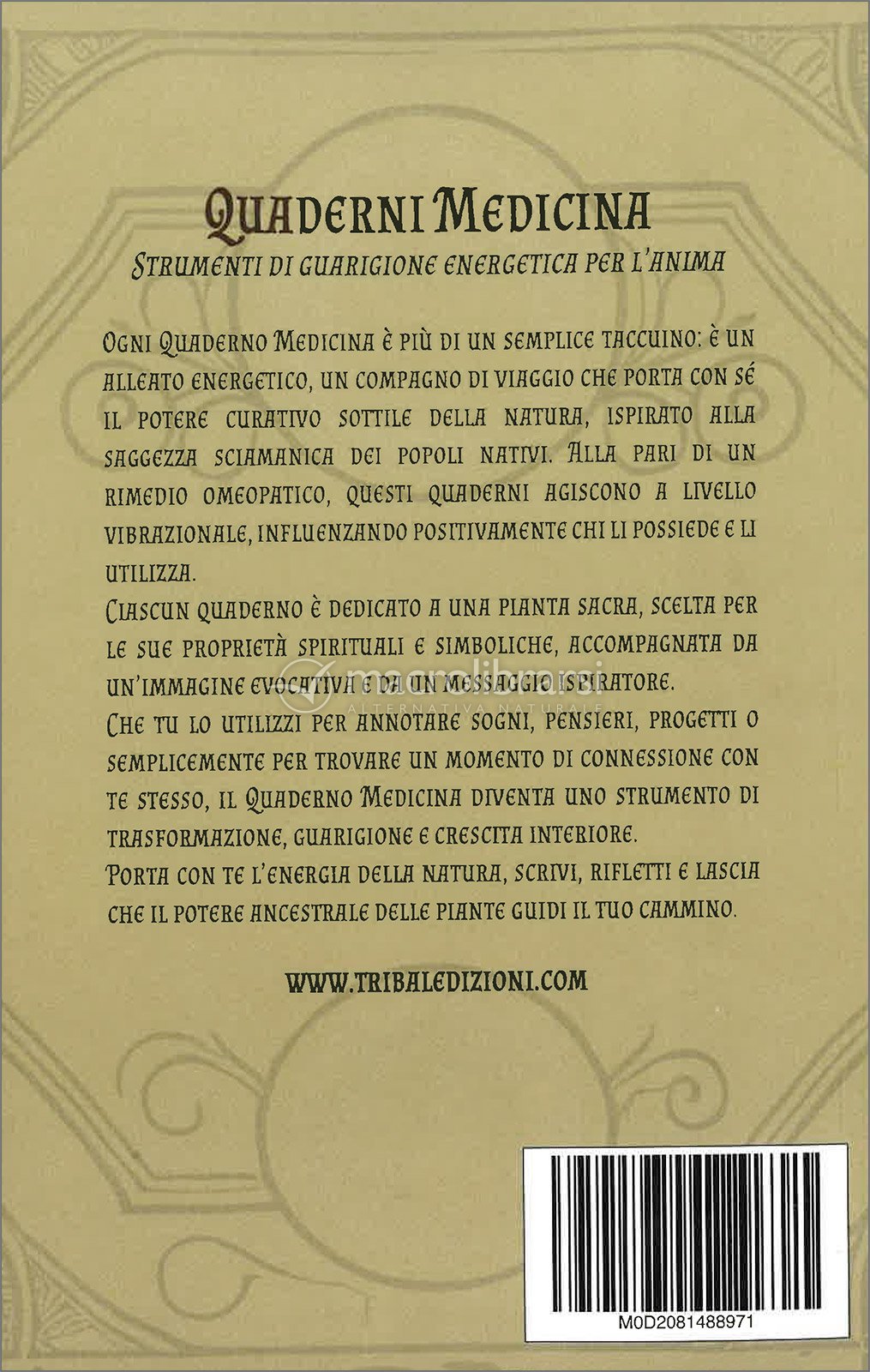 Questo quaderno fa parte della linea dei Quaderni Medicina, taccuini energetici che agiscono a livello sottile, come rimedi vibrazionali.