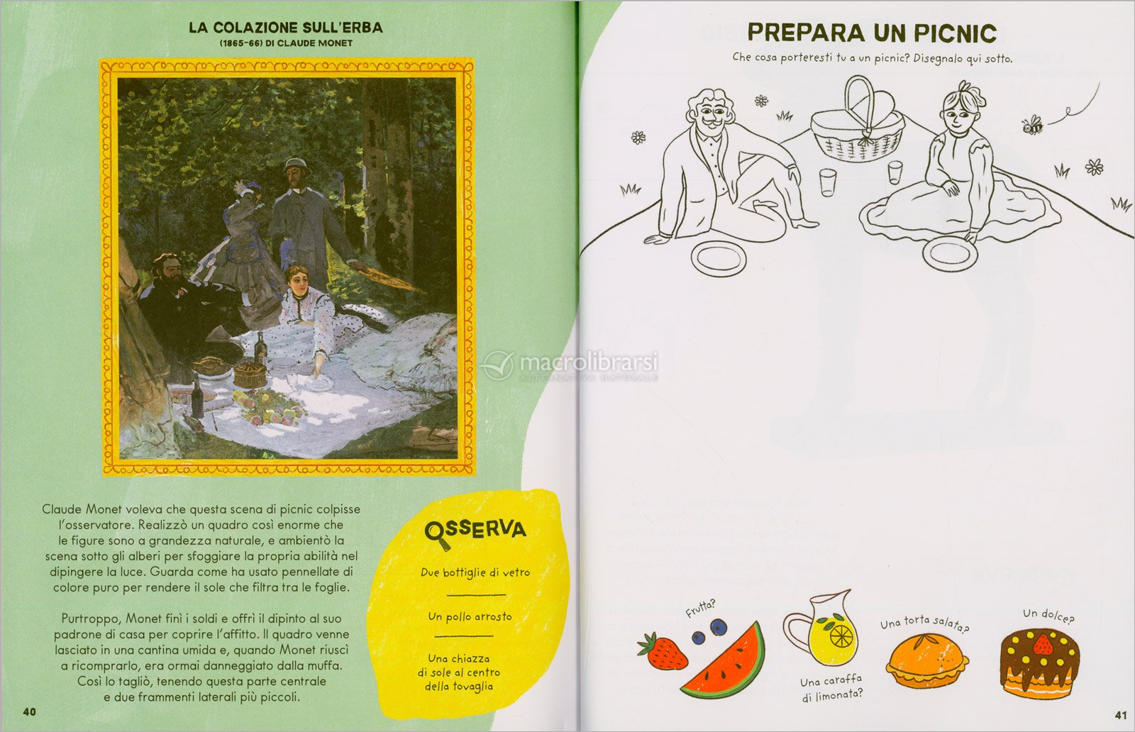 Il libro invita i bambini a osservare da vicino alcune delle opere più conosciute della storia dell’arte e a reinterpretarle attraverso il disegno e il colore, seguendo tracce, spunti e forme che stimolano attenzione e creatività.