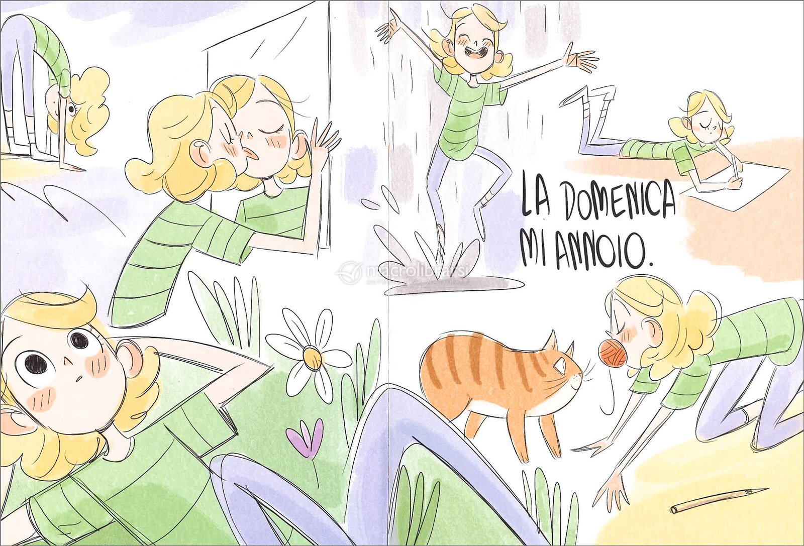 La protagonista racconta giornate piene di scuola e attività, tra corsi e appuntamenti che sembrano necessari per diventare grandi.