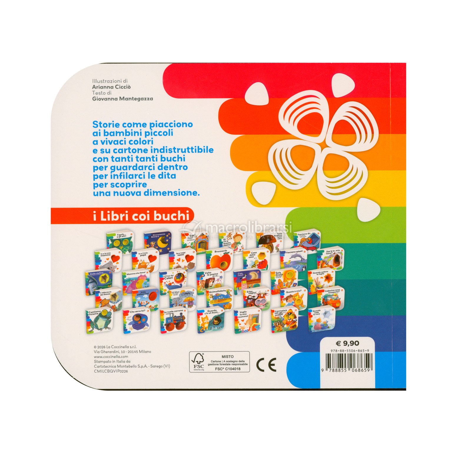 I caratteristici buchi concentrici invitano a guardare, toccare e giocare con le forme. Colori vivaci e illustrazioni sognanti catturano lo sguardo e stimolano la curiosità.