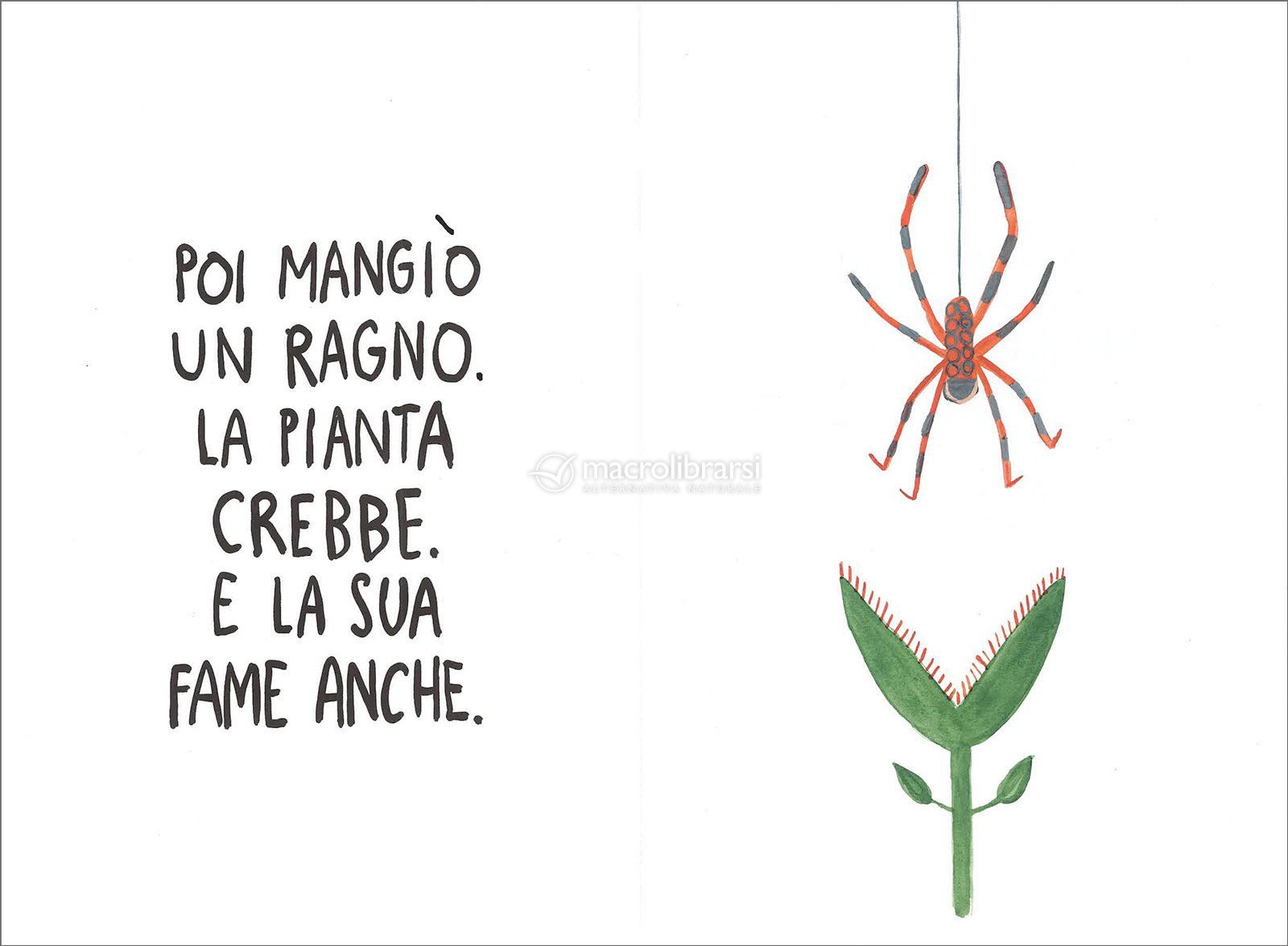 La protagonista è una pianta dall’appetito inesauribile che, pagina dopo pagina, inghiotte tutto ciò che incontra, dando vita a una sequenza sempre più imprevedibile.