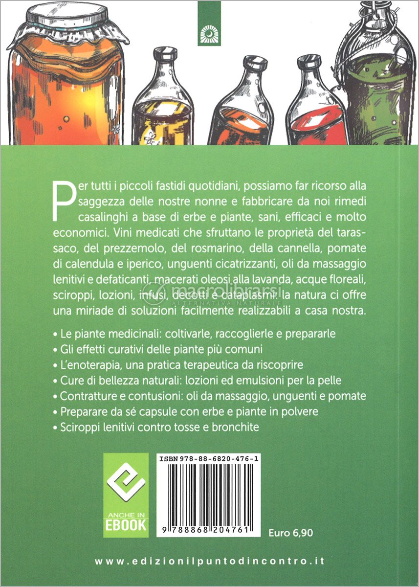 Piccolo libricino, ricchissimo di contenuti chiari, ben dettagliati su come preparare prodotti a base di erbe in modo casalingo, e con tutte le attenzioni del caso, tempi, materiali , raccolta, trasformazione di: macerati oleosi , infusi, decotti, compresse per uso topico ,suffumigi , lozioni ed emulsioni, sciroppi, ovuli, pomate e diverse ricette di vini medicati...molto meglio di tanti libroni che promettono di più, ma solo in confusione in tanti casi... Non è semplice condensare in così poco spazio e chiaramente queste informazioni ,e potessi darei 10 stelle all' autore e tutti i miei complimenti.