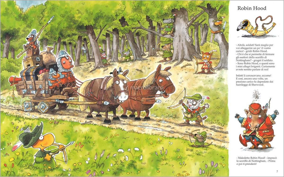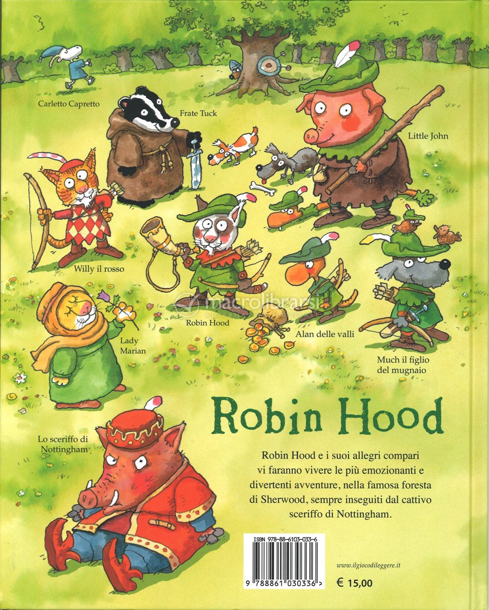 La fiaba di Robin Hood raccontata attraversi dei simpaticissimi animali, per un libro divertente e avventuroso.