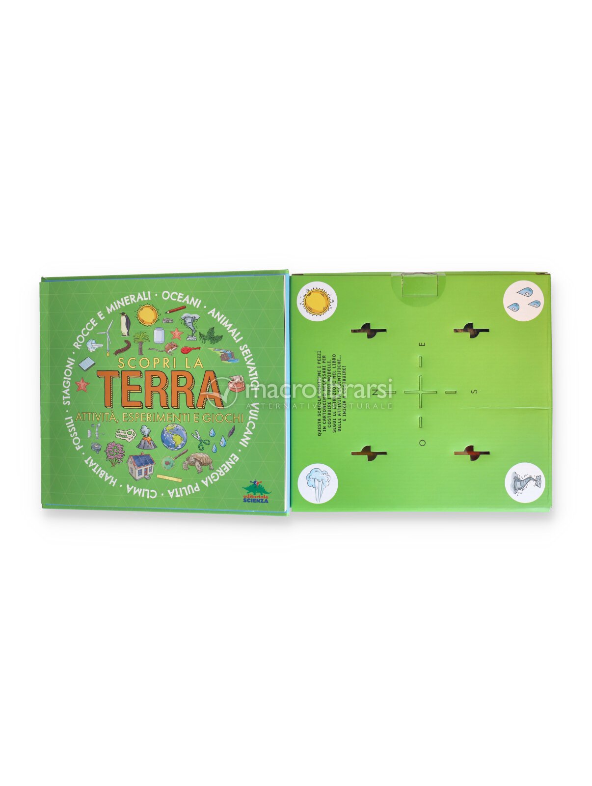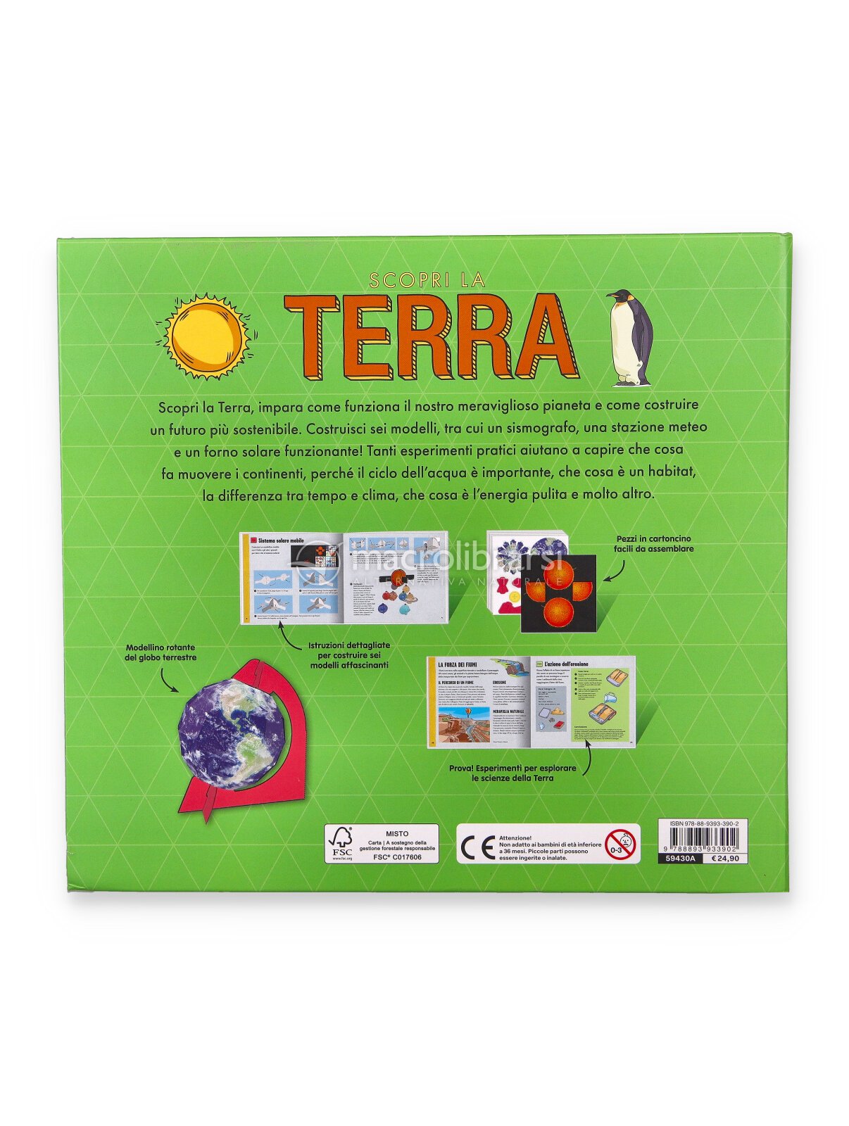 Scopri la Terra con modellini da assemblare è un libro-gioco che unisce lettura ed esperienza pratica: pagina dopo pagina, i ragazzi imparano come funziona il nostro pianeta costruendo sei modellini, tra cui un sismografo, una stazione meteo e un forno solare funzionante.