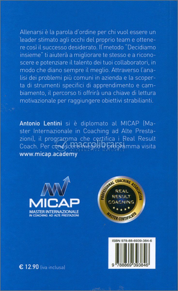 Allenarsi è la parola d’ordine per chi vuol essere un leader stimato agli occhi del proprio team e ottenere così il successo desiderato. Il metodo “Decidiamo insieme” ti aiuterà a migliorare te stesso e a riconoscere e potenziare il talento dei tuoi collaboratori, in modo che diano sempre il meglio. Attraverso l’analisi dei problemi più comuni in azienda e la scoperta di strumenti specifici di apprendimento e cambiamento, il percorso ti offrirà una chiave di lettura motivazionale per raggiungere obiettivi strabilianti.