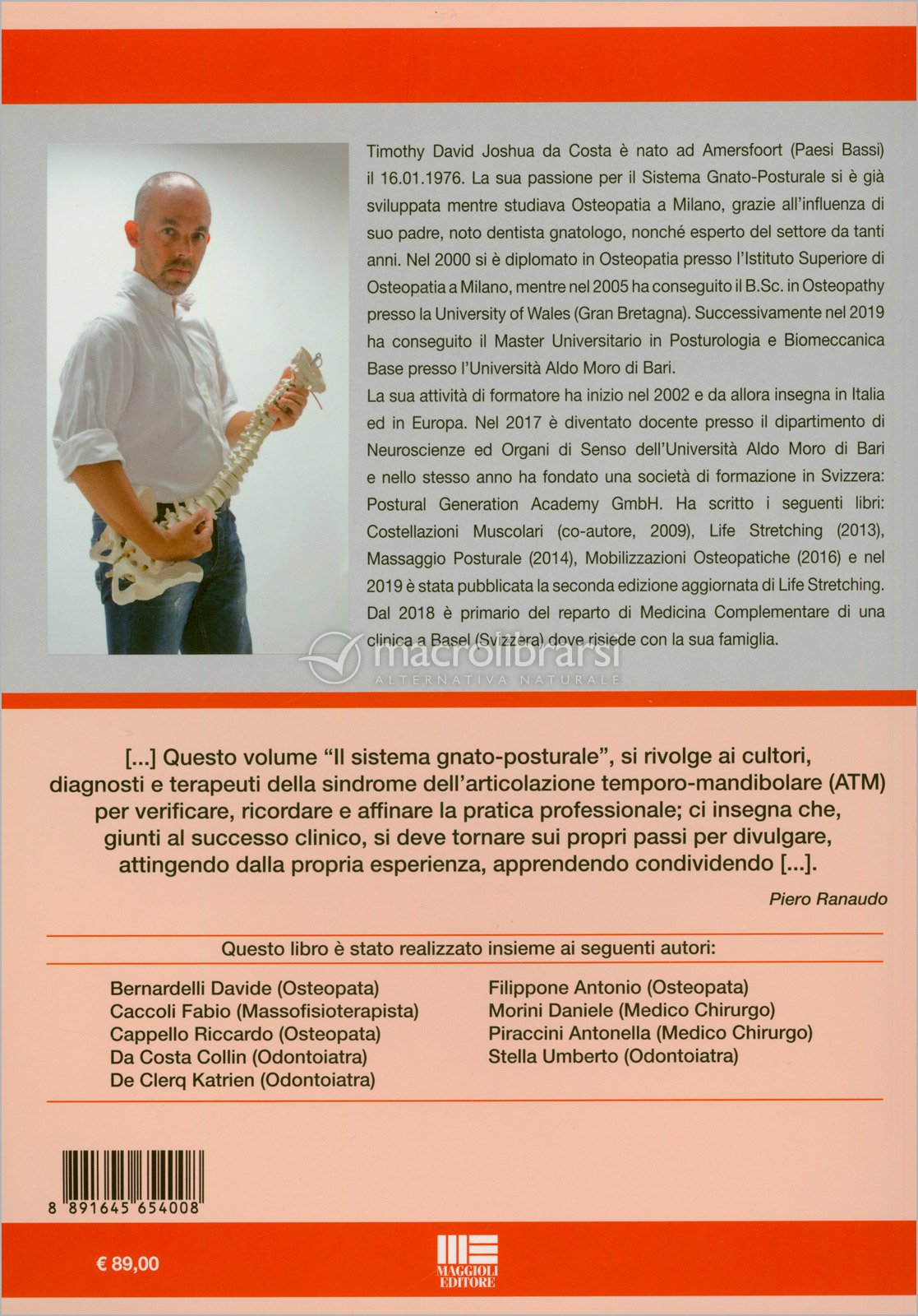 Timothy da Costa, osteopata e docente con una lunga esperienza internazionale, guida il lettore attraverso un percorso che parte dall’anatomo-fisiologia della mandibola e dell’articolazione temporo-mandibolare per arrivare alle ricadute posturali che spesso accompagnano le disfunzioni occlusali.
