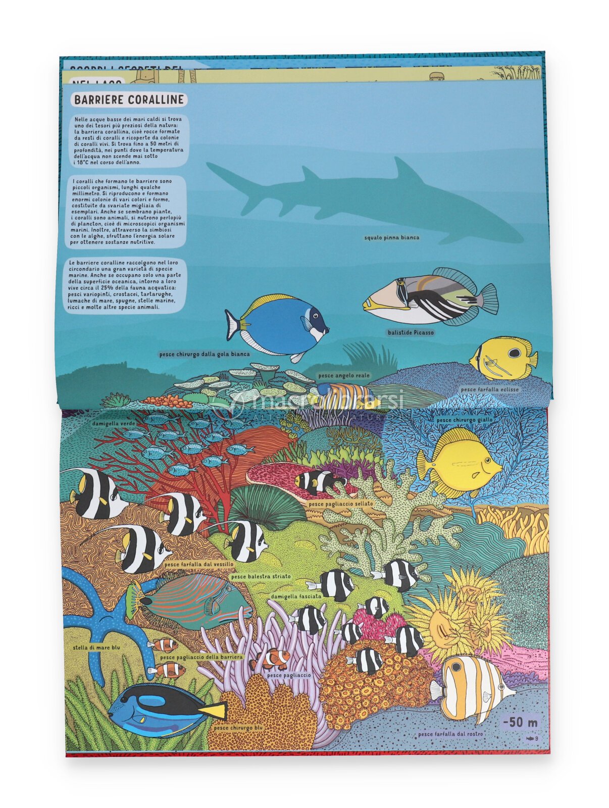 Il libro si sviluppa in una struttura originale a doppia lettura: da un lato si scende nel mondo sottomarino, tra creature degli abissi, sommergibili e paesaggi oceanici sorprendenti; dall’altro si penetra nel sottosuolo, alla scoperta di grotte, miniere, fossili e radici, seguendo un viaggio che attraversa strati sempre più profondi.
