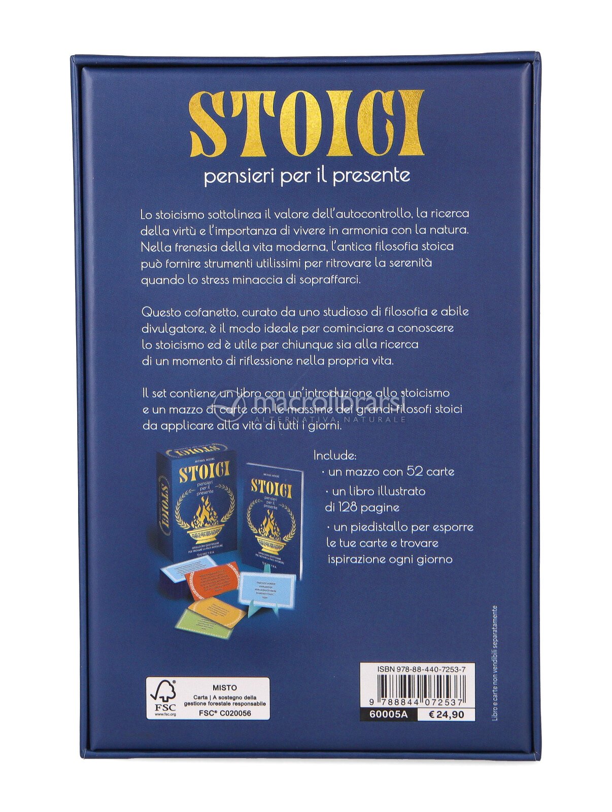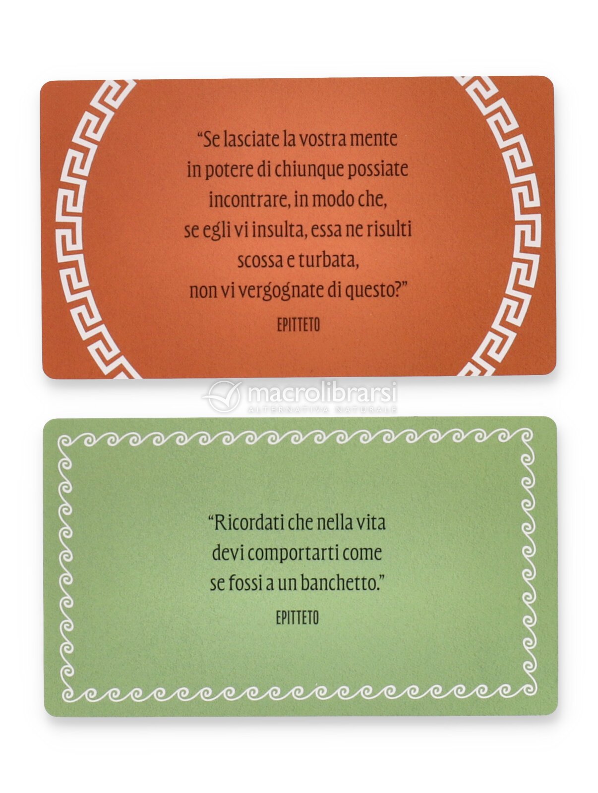 All’interno trovi un libro introduttivo che ti guida tra i concetti chiave dello stoicismo e un mazzo di 52 carte con massime dei grandi filosofi stoici, pensate per essere lette e applicate giorno per giorno. Puoi usarle come rituale quotidiano, come spunto di riflessione quando ti senti agitato, o come bussola nei momenti in cui serve ritrovare direzione.
