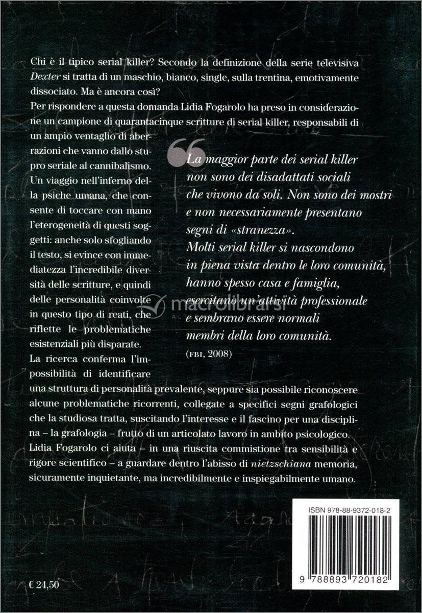 «Il lavoro della psicologa e grafologa Lidia Fogarolo, Storie di serial killer. Nella mente degli assassini seriali attraverso l’analisi della scrittura, tratta di cosiddetti mostri assicurati alla giustizia. Esseri umani in cammino lungo uno dei percorsi più estremi che si possano immaginare nella vasta landa delle umane negatività. Lo studio della grafologa nonché la scelta delle scritture analizzate nell’opera, pone in risalto una sua dote umana – pertanto professionale – non così scontata: l’onestà intellettuale».