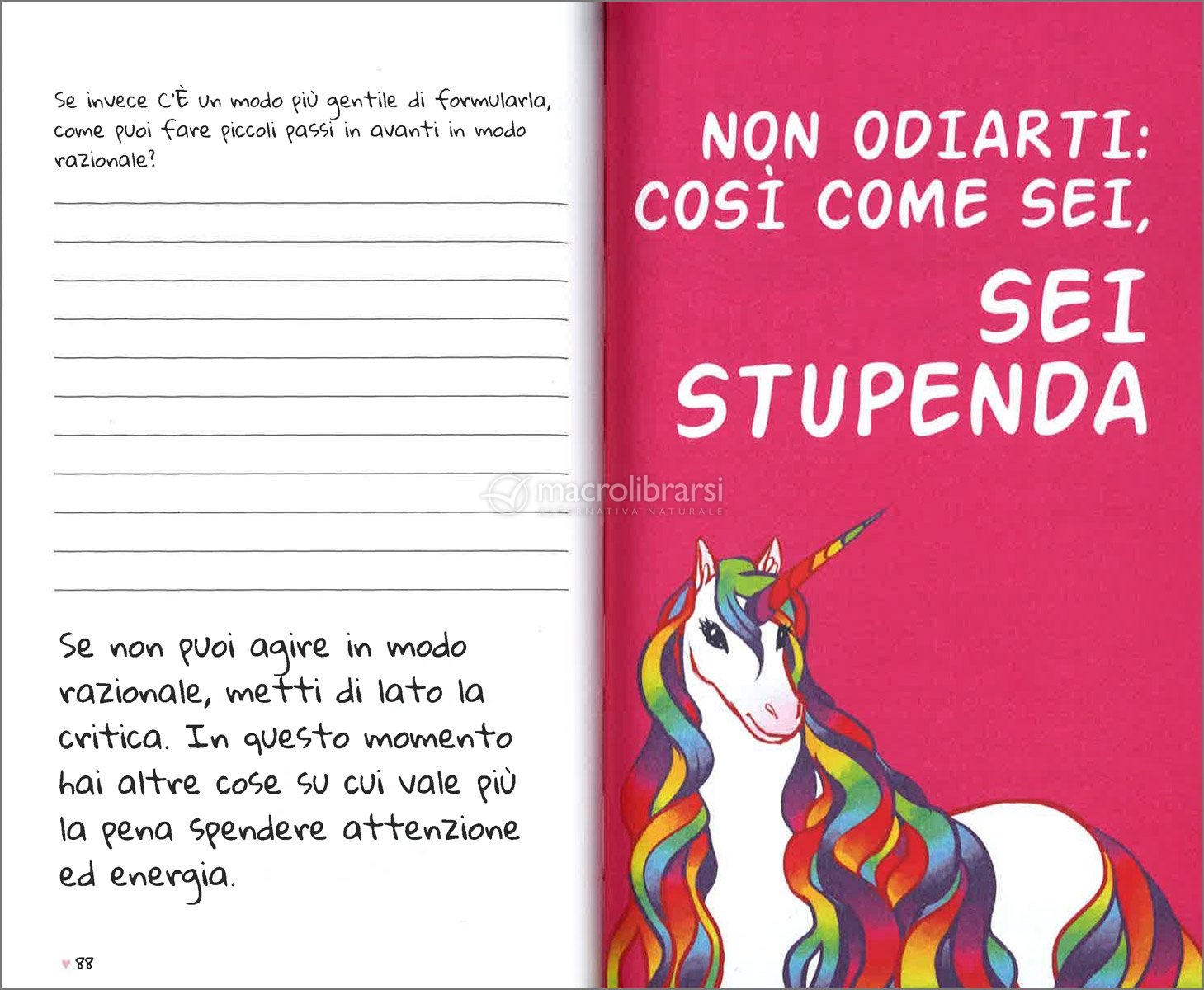 Questo è un diario motivazionale, che non solo ti farà sentire meglio nel breve termine con esercizi divertenti, immagini bizzarre, ma ti aiuterà anche a combattere i pensieri negativi a guardare te stessa con compassione.