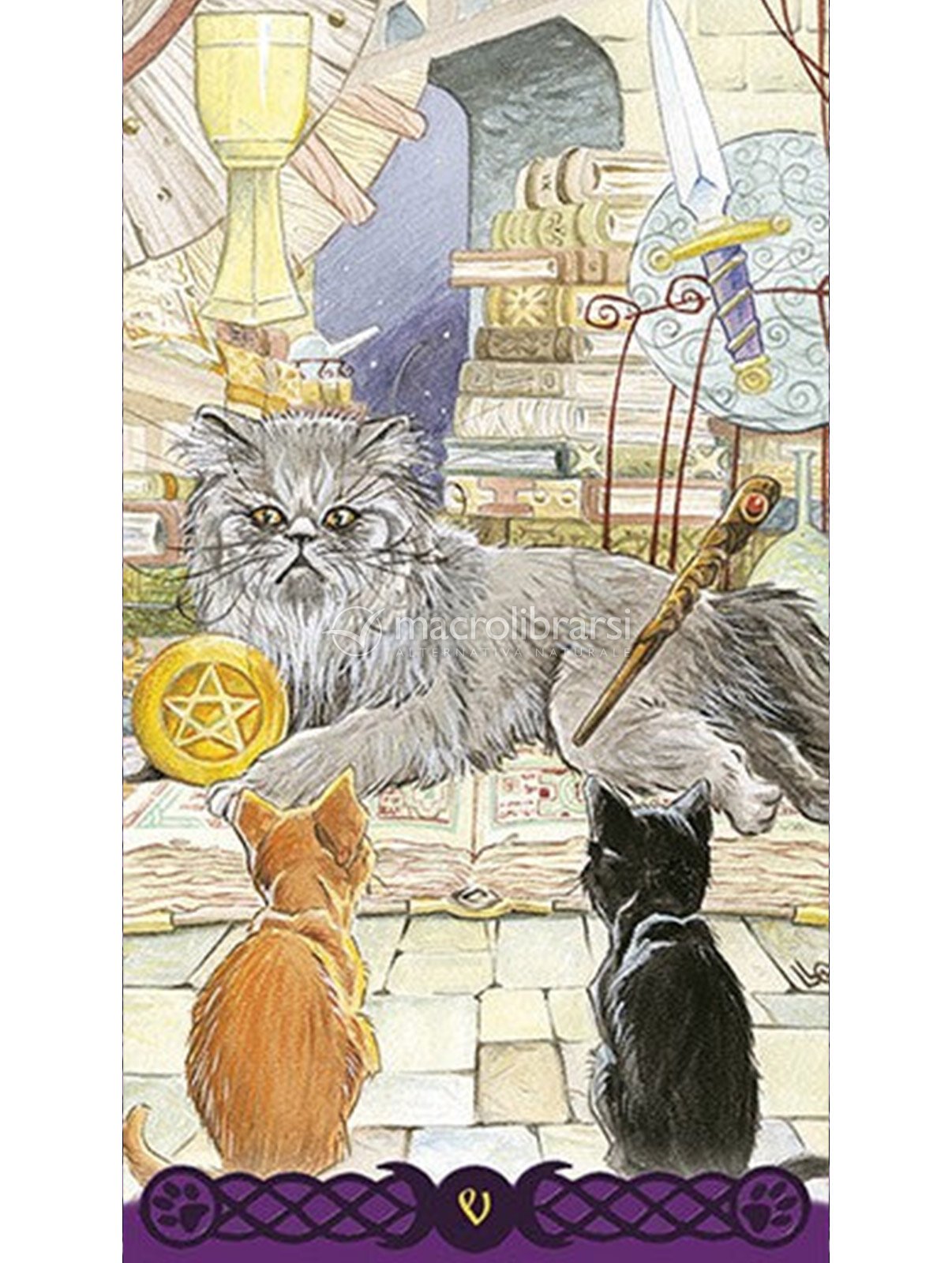 Sulla base del simbolismo di Rider-Waite, il collegamento pagano è sottile e le carte mostrano i gatti che si comportano con movenze naturali nelle scene esperte del tarocco.