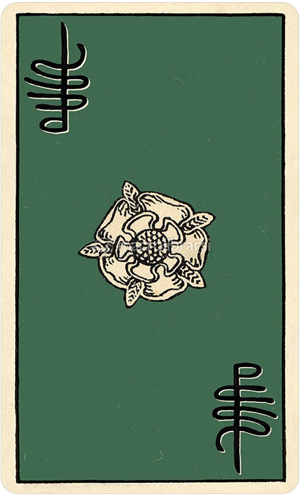 Questo mazzo di 84 carte include quattro carte extra, inclusi due dipinti ad acquerello "Catch Me" e "Duet", l'illustrazione degli amanti dalla commedia Deirdre e un'illustrazione dallo spartito di "Christmas Carol".