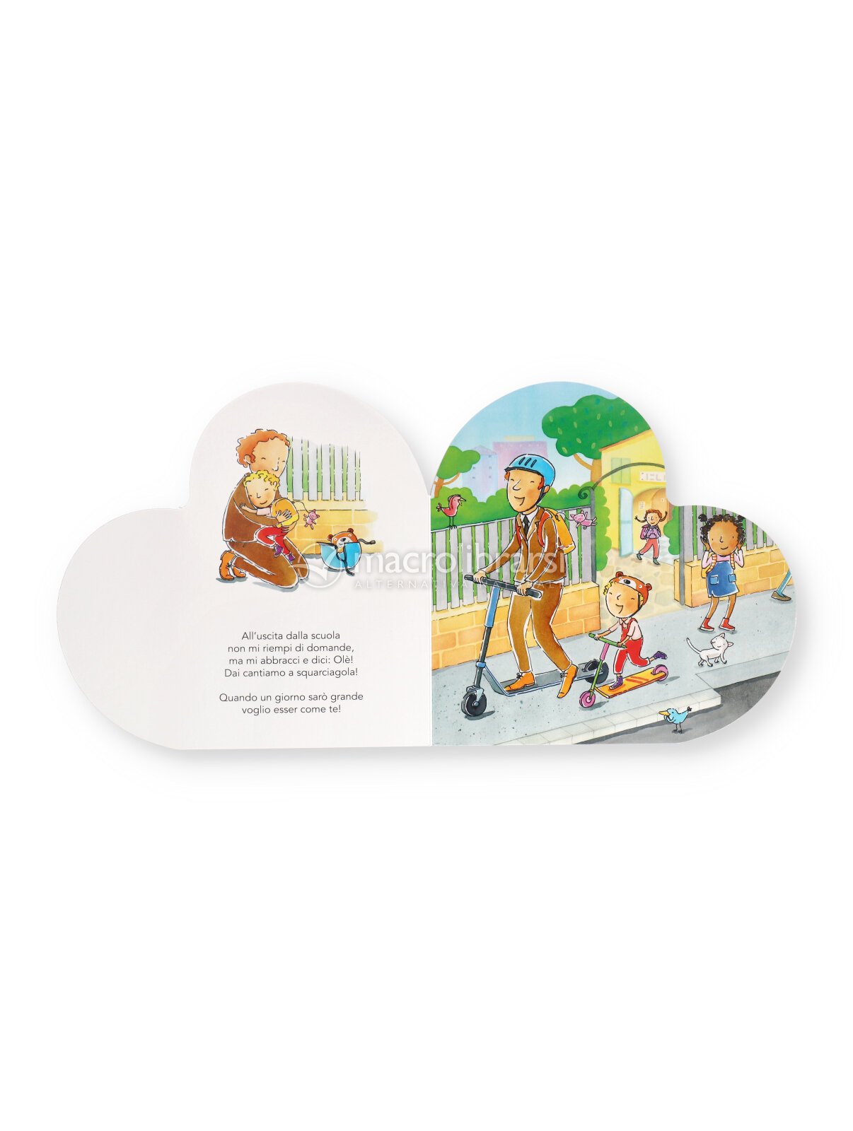 Le situazioni quotidiane più buffe, tenere e divertenti che rendono speciale il rapporto con il papà, piccoli aneddoti universali in cui ogni bambino potrà immedesimarsi: il papà la mattina quando mi sveglio, il papà quando viene a prendermi a scuola, il papà quando giochiamo al parco, il papà quando fa la spesa, il papà quando prepara la cena.