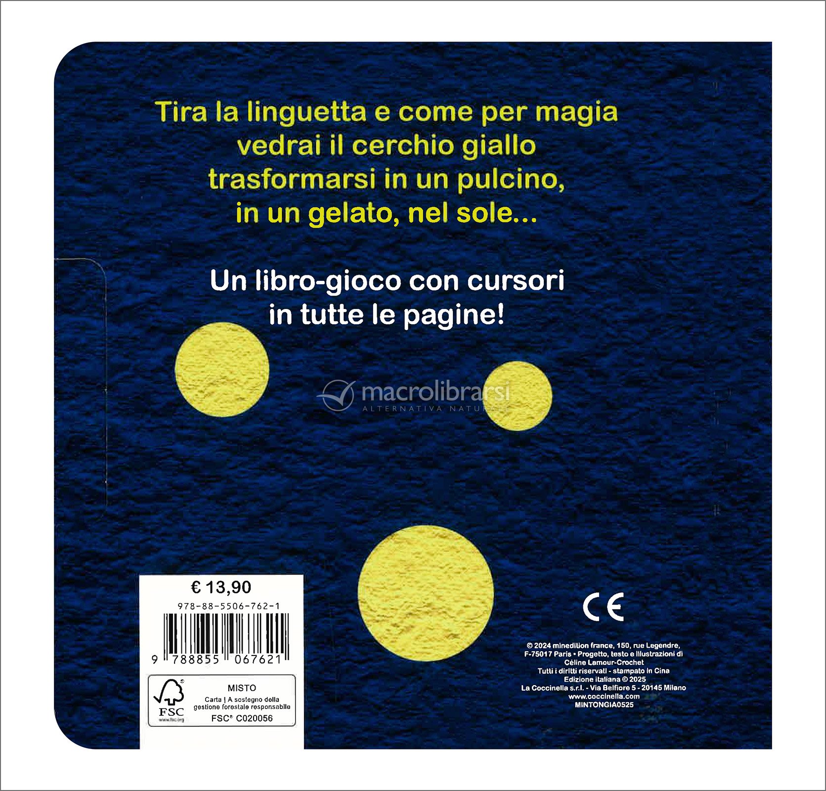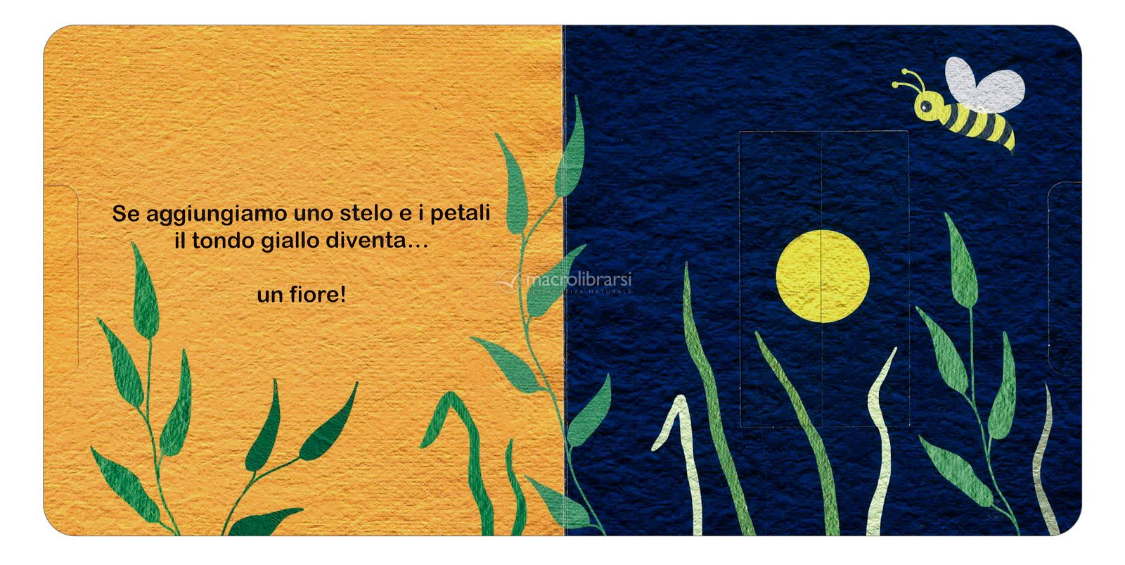Tirando la linguetta il tondo giallo si trasforma in un pulcino, in un gelato, nel sole...