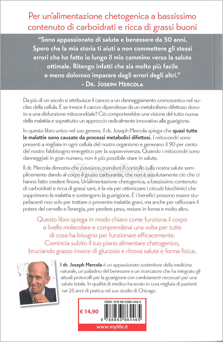 In questo libro il dr. Joseph Mercola spiega come quasi tutte le malattie sono causate da processi metabolici difettosi. I mitocondri sono presenti a migliaia in ogni cellula del nostro organismo e generano il 90 per cento del nostro fabbisogno energetico per la sopravvivenza. Quando i mitocondri sono danneggiati in gran numero, non è più possibile stare in salute.