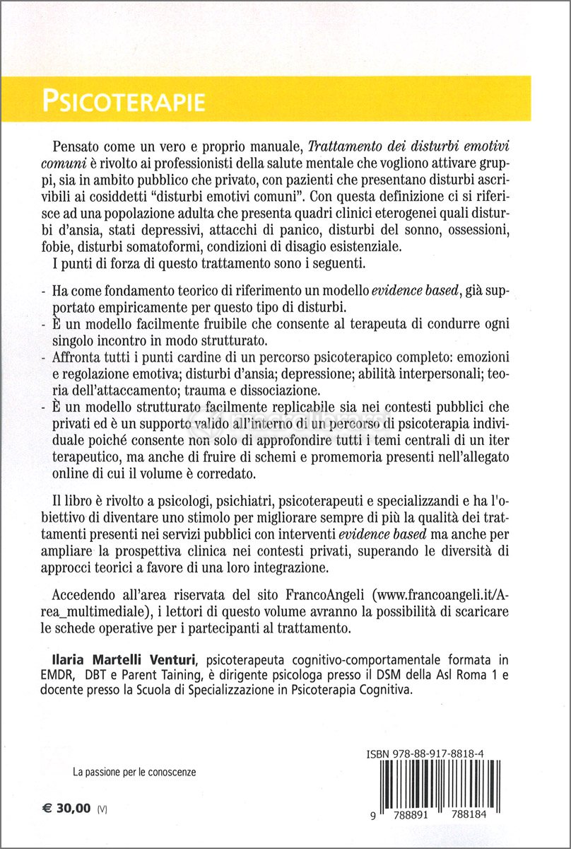 Pensato come un vero e proprio manuale, Trattamento dei disturbi emotivi comuni è rivolto ai professionisti della salute mentale che vogliono attivare gruppi, sia in ambito pubblico che privato, con pazienti che presentano disturbi ascrivibili ai cosiddetti "disturbi emotivi comuni".