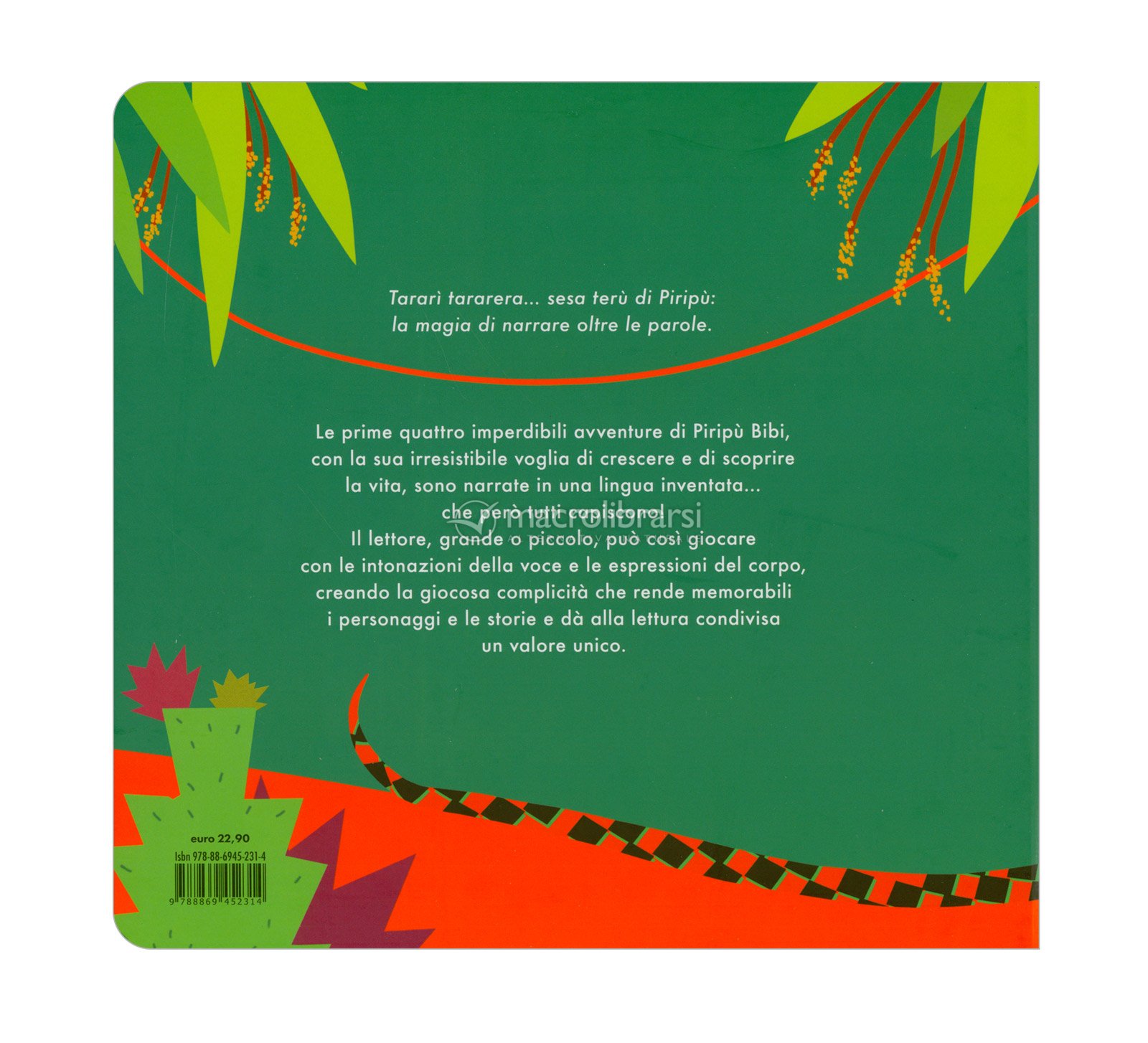 Questa raccolta riunisce le prime quattro avventure di Piripù Bibi, storie piene di suoni inventati che invitano grandi e piccoli a giocare con la voce, le intonazioni e il ritmo della narrazione.