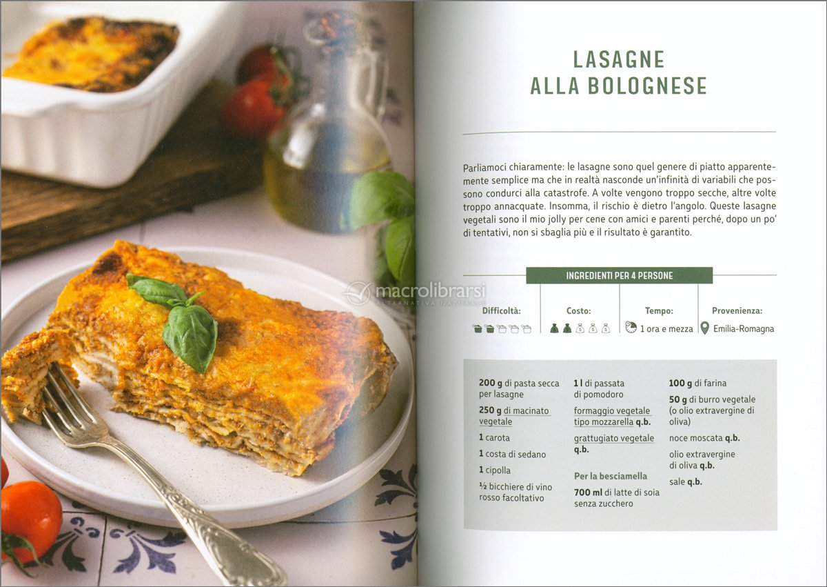 Per questo Sarah (che ama definirsi “la nonna vegana del futuro, quella che per chiederti se stai bene, ti dice: Vuoi un’altra polpetta?”) ha raccolto cinquanta ricette accessibili a chiunque, dettagliate per costo, difficoltà e tempo di esecuzione, tutte splendidamente fotografate.