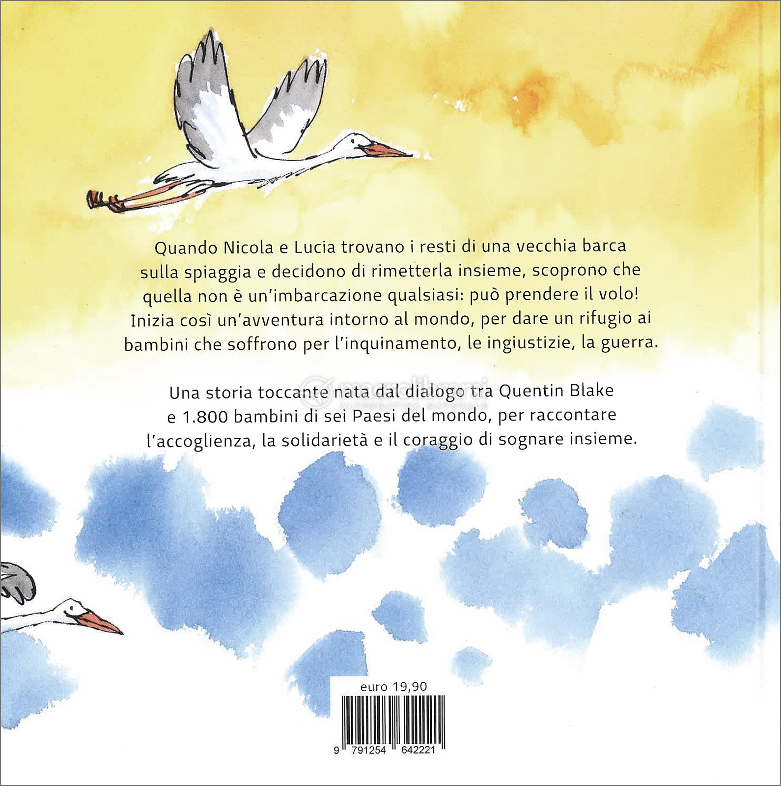 Da quel momento inizia un viaggio poetico e pieno di speranza, in cui ogni incontro diventa un dono: una cicogna ferita, un bambino che lavora, una bambina esclusa perché diversa. A bordo della loro arca volante, i protagonisti accolgono chi soffre e costruiscono un piccolo mondo fondato su amicizia, accoglienza e rispetto.