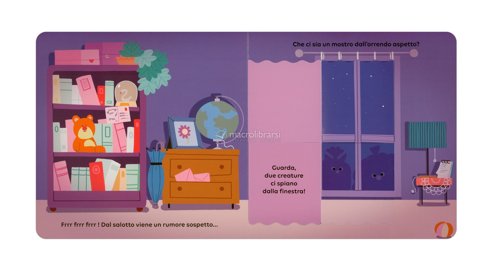 Apri porte, controlla sotto il letto, solleva le tende: scoprire cosa si nasconde diventa un gioco divertente per affrontare le piccole paure di ogni giorno.