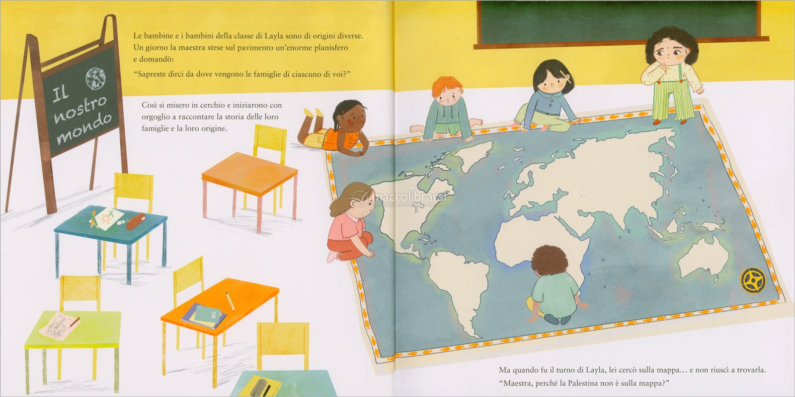 Layla cerca con attenzione, ma non riesce a trovare il luogo da cui provengono i suoi cari: la Palestina.