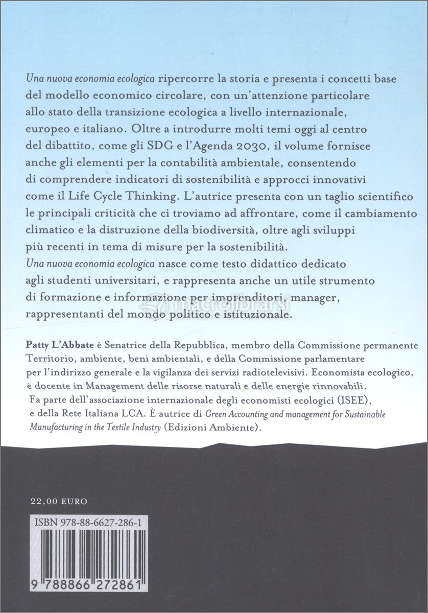 L’autrice, che come senatrice e docente universitaria si occupa da anni di ambiente, economia e sostenibilità, ripercorre la storia e presenta i concetti base del modello economico ecologico e circolare, con un’attenzione particolare allo stato della transizione ecologica a livello internazionale, europeo e italiano.